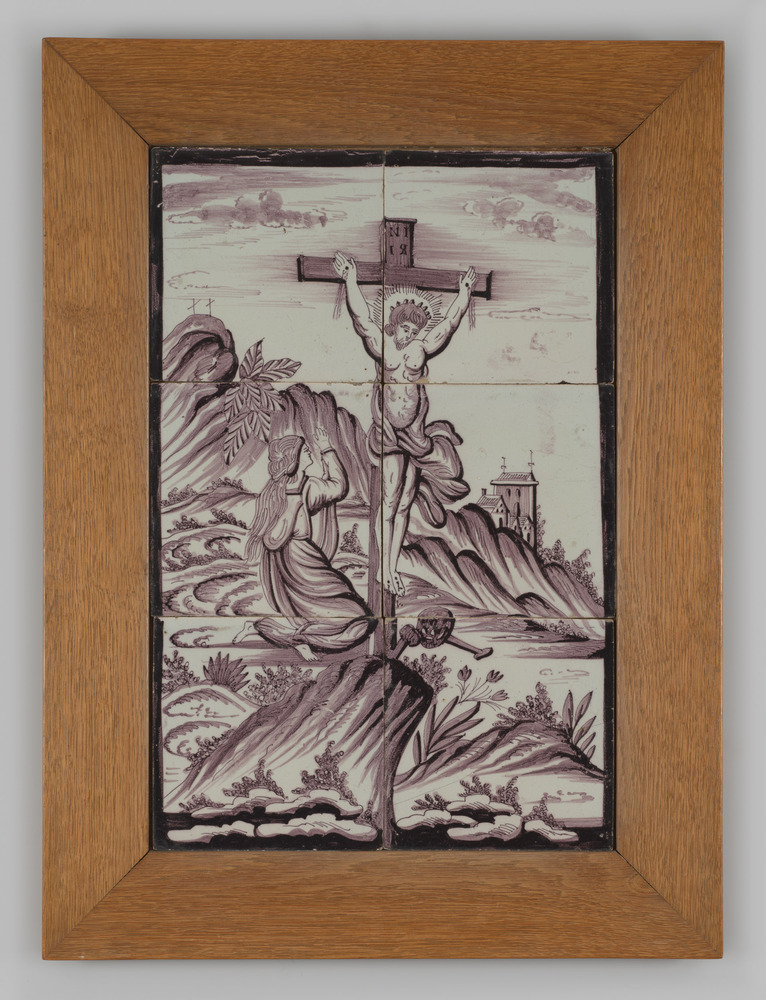 tegeltableau van keramiek met tinglazuur, voorstelle...