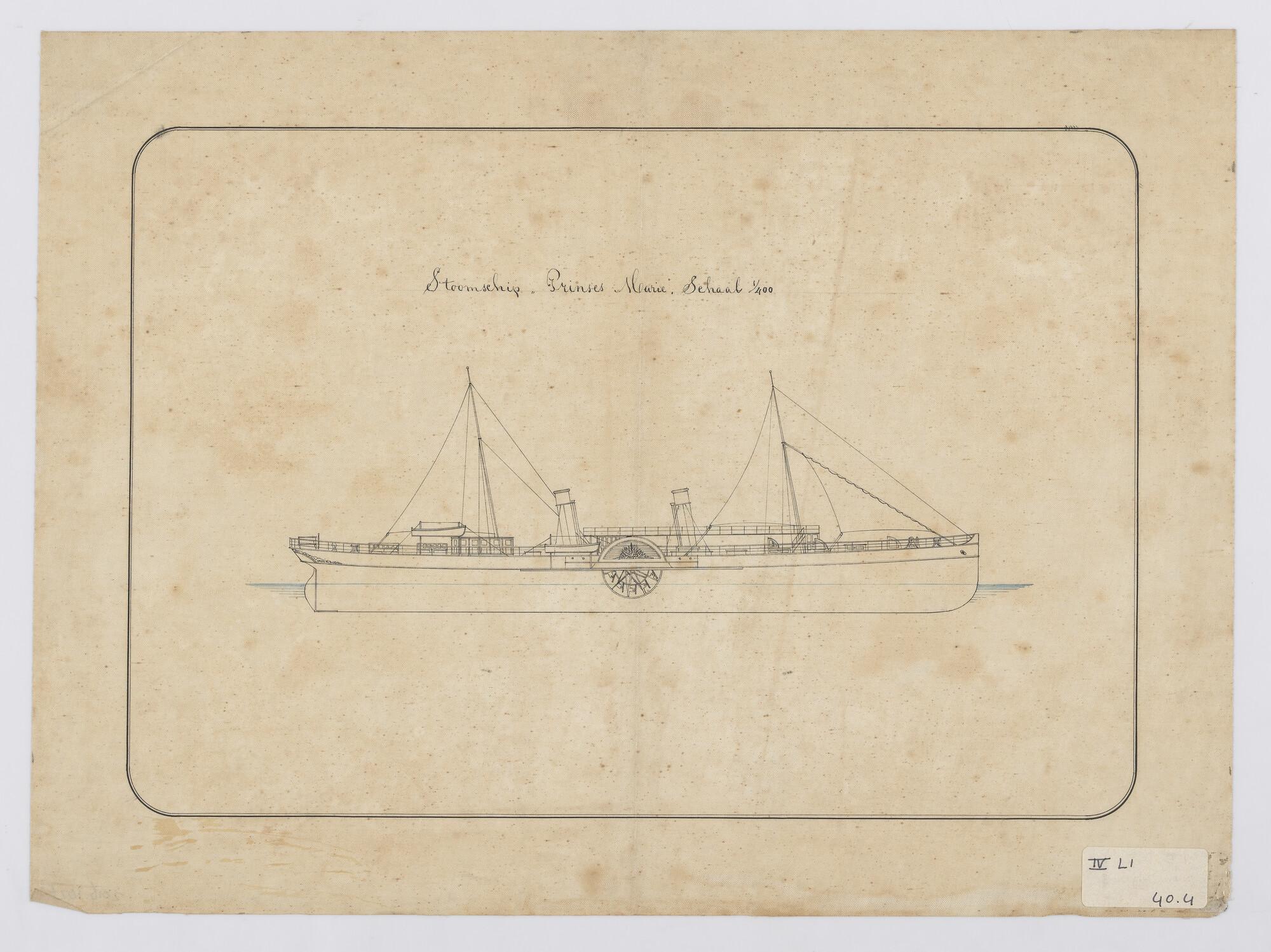 Zijaanzicht van de raderstoomschepen 'Prinses Marie'...