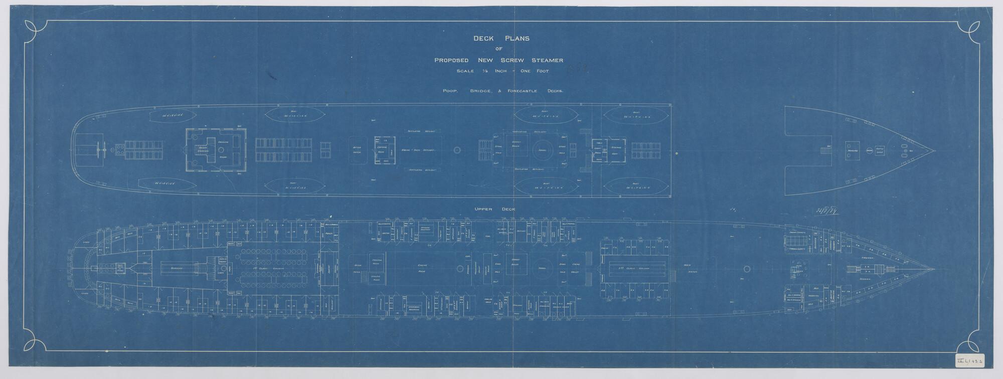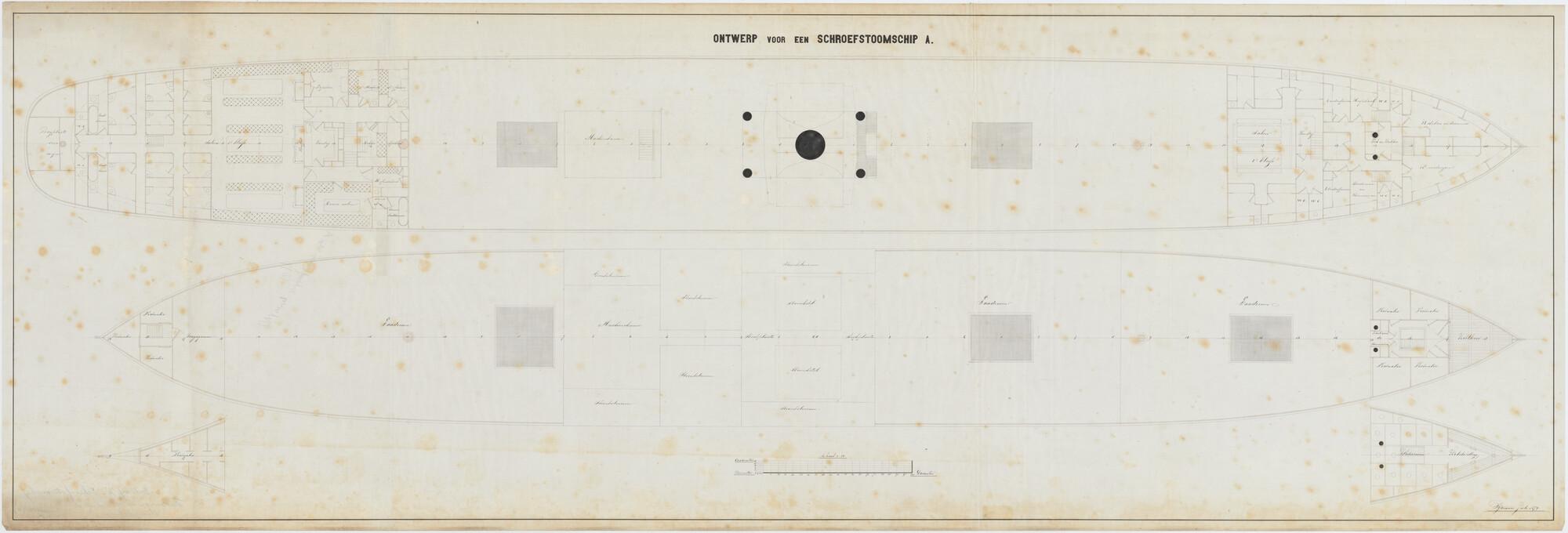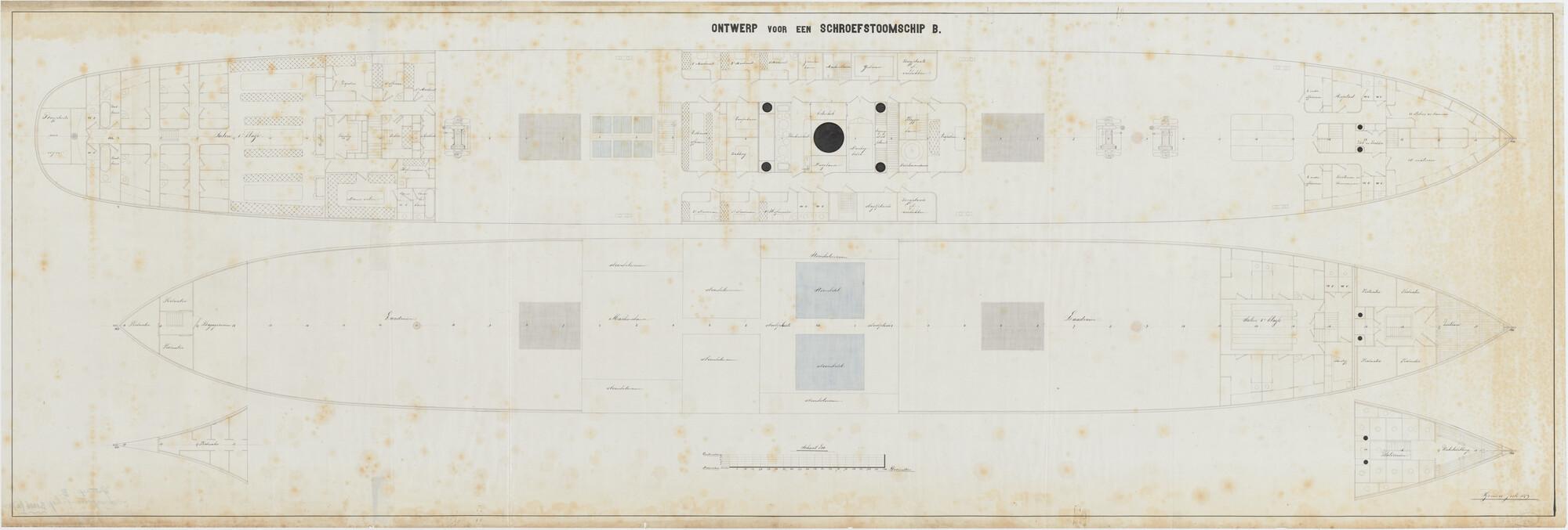 Bovendek, en tussendek van een schroefstoomschip A/B