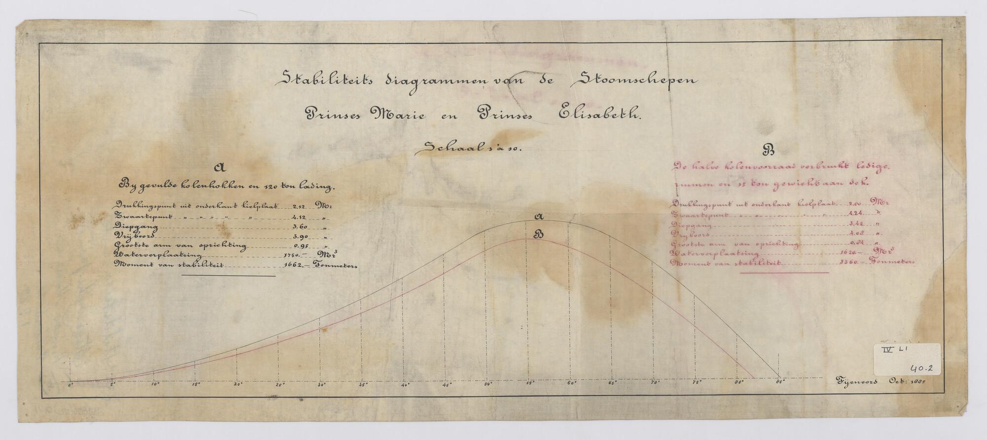 Stabiliteits diagrammen van de raderstoomschepen Pri...
