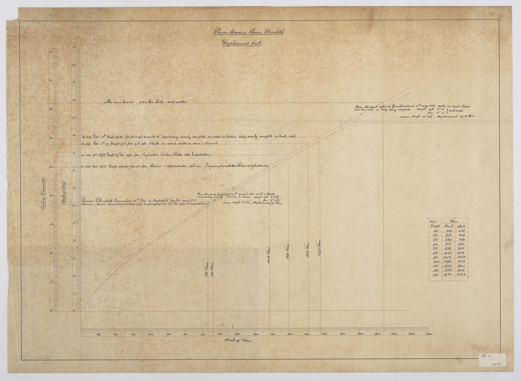 Schaal van waterverplaatsing raderstoomschepen Prins...