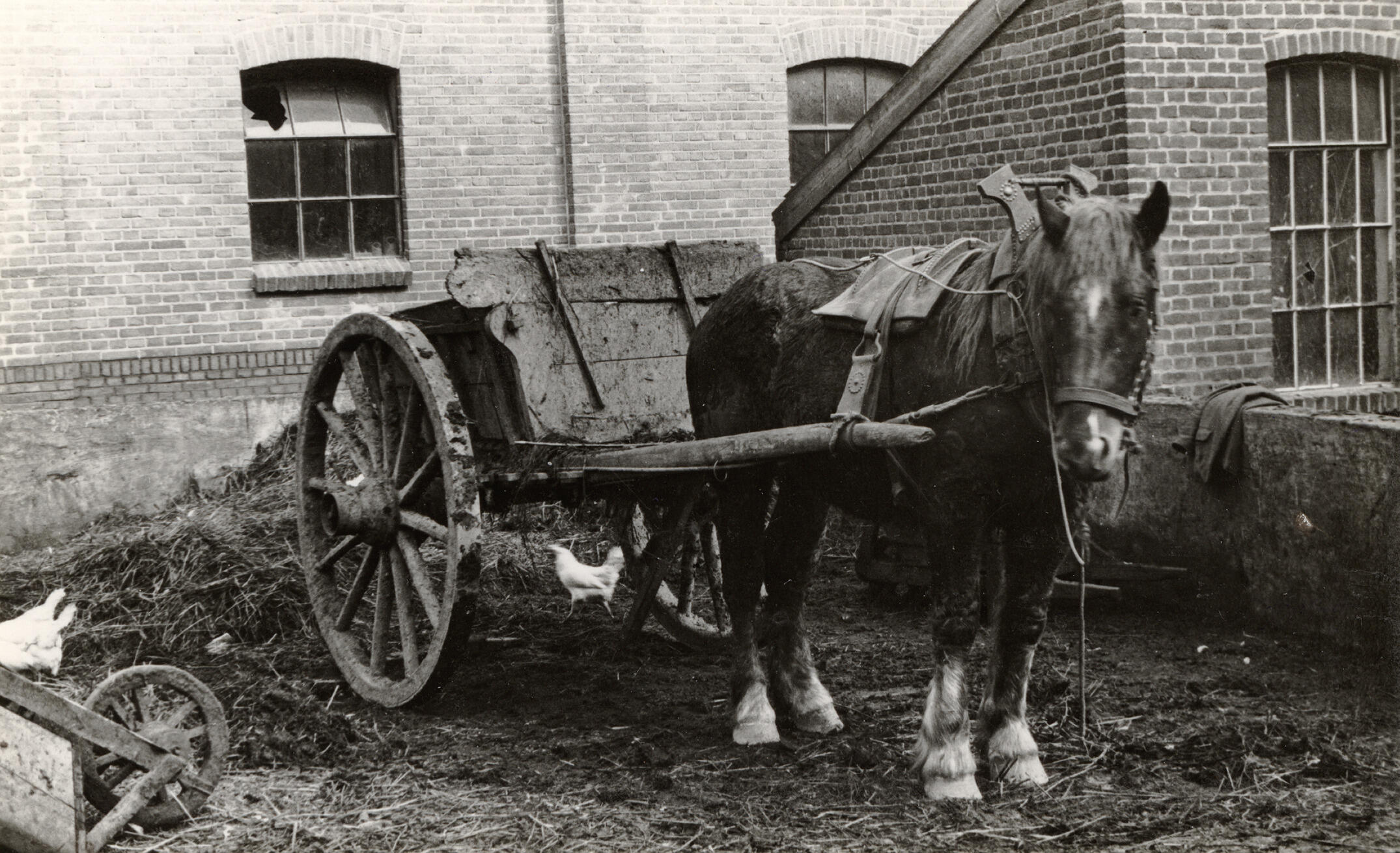 Mestrijden met een mestkar, Beers, 1936 (zwart-wit f...