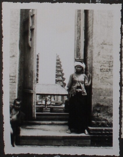 Europese vrouw voor tempelcomplex Besakih