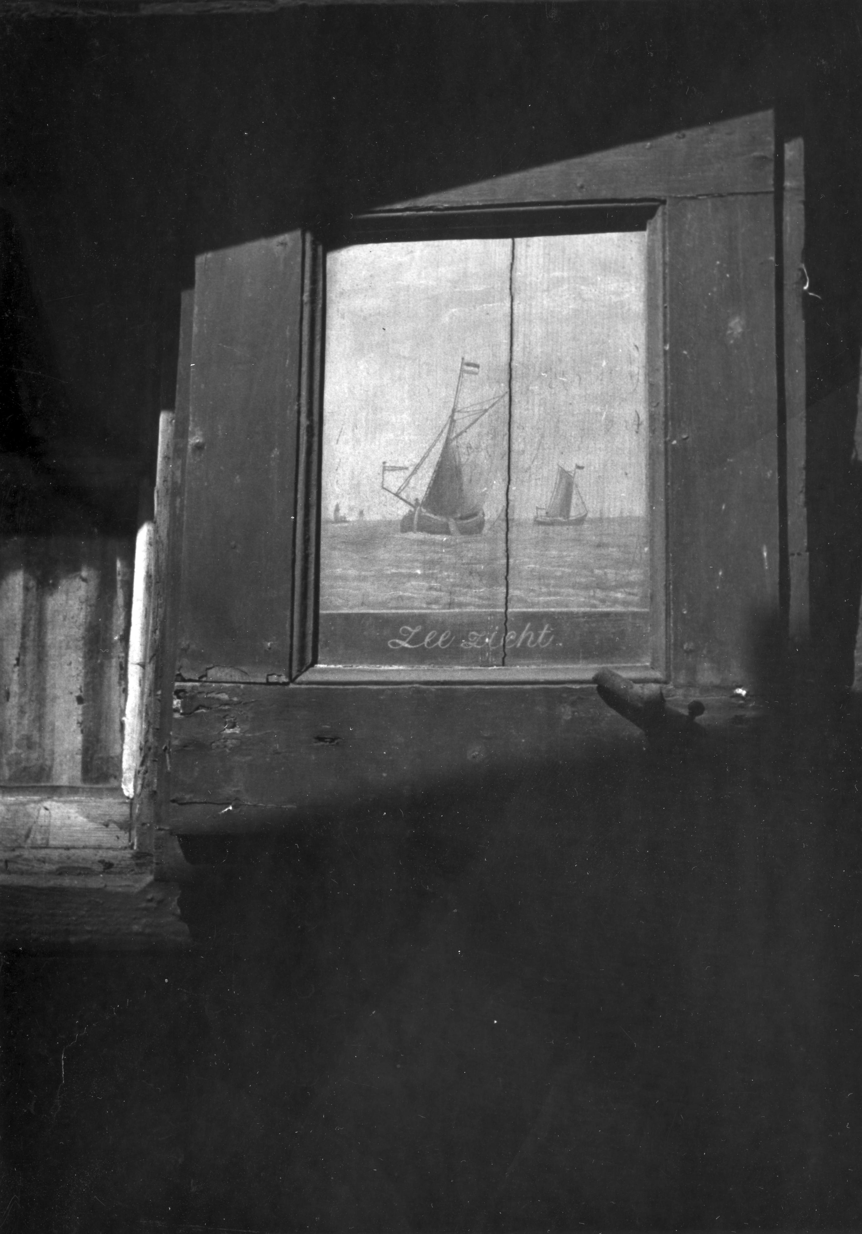 Vensterluik met schildering, Marken, 1943 (zwart-wit...