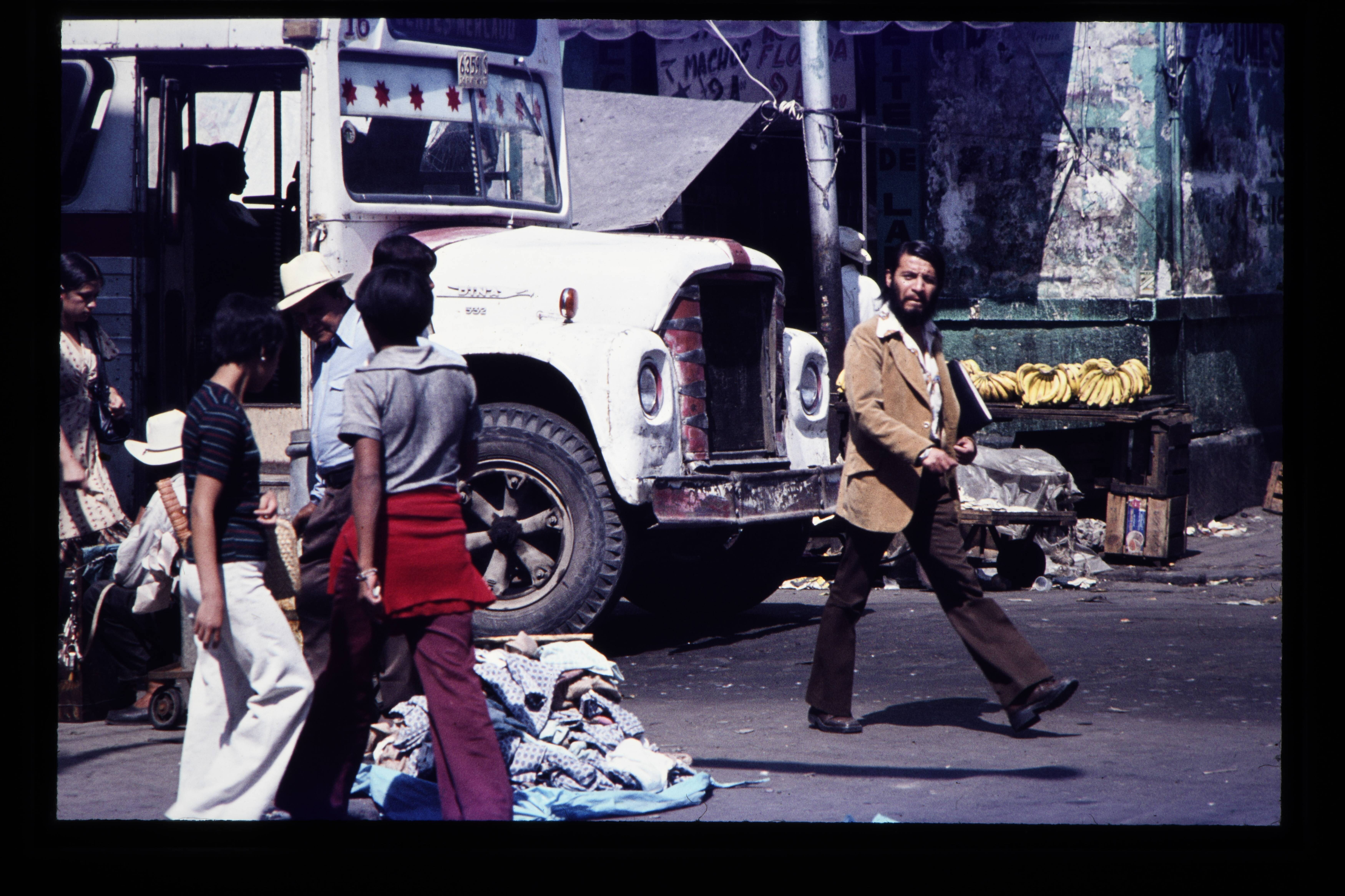 'Opgesierde trucks in de straten van Puebla. '