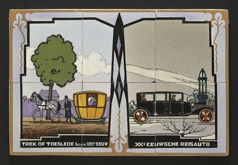 Tegeltableau van keramiek in onderglazuur, voorstell...