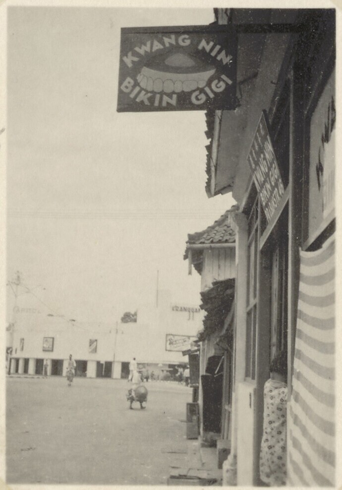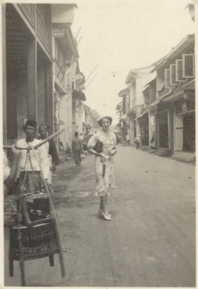 Een Europese vrouw in een Chinese wijk in Soerabaja