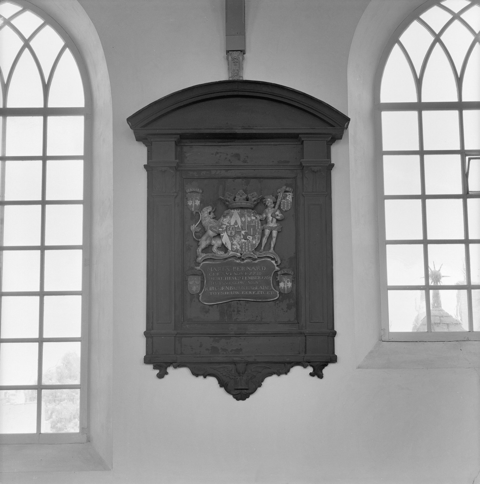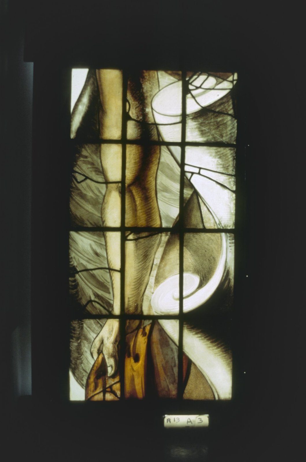 Interieur, gebrandschilderd glas, raam 13: "Wapen va...