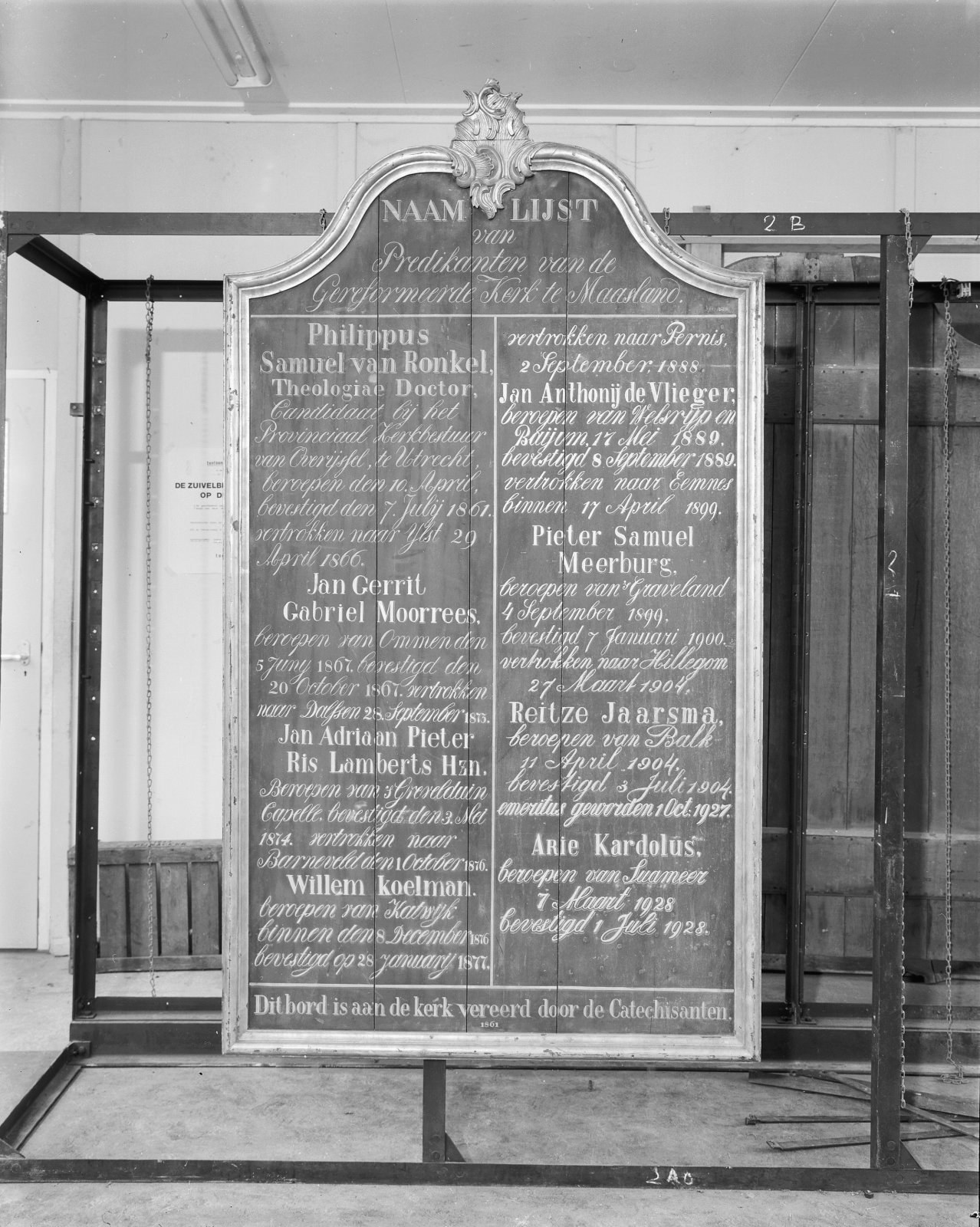 Interieur Hervormde kerk, kerkbord met naamlijst der...