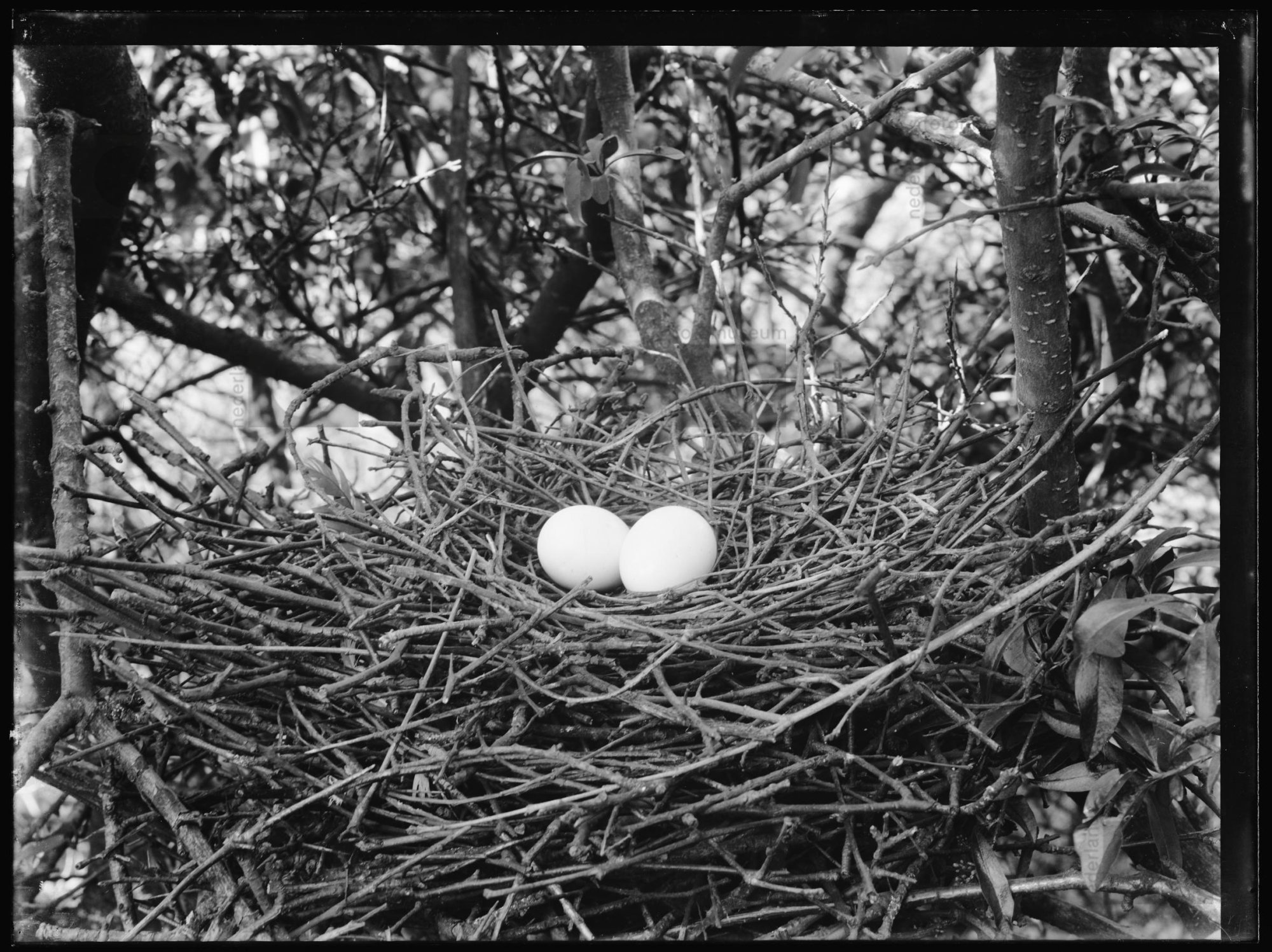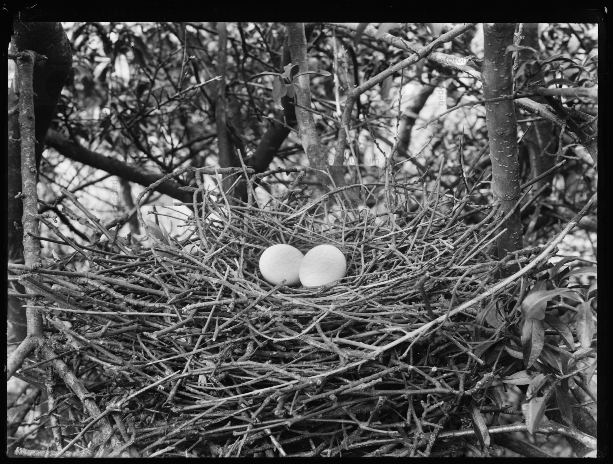 Nest met eieren van de Houtduif, Jachtduinen, Bloeme...