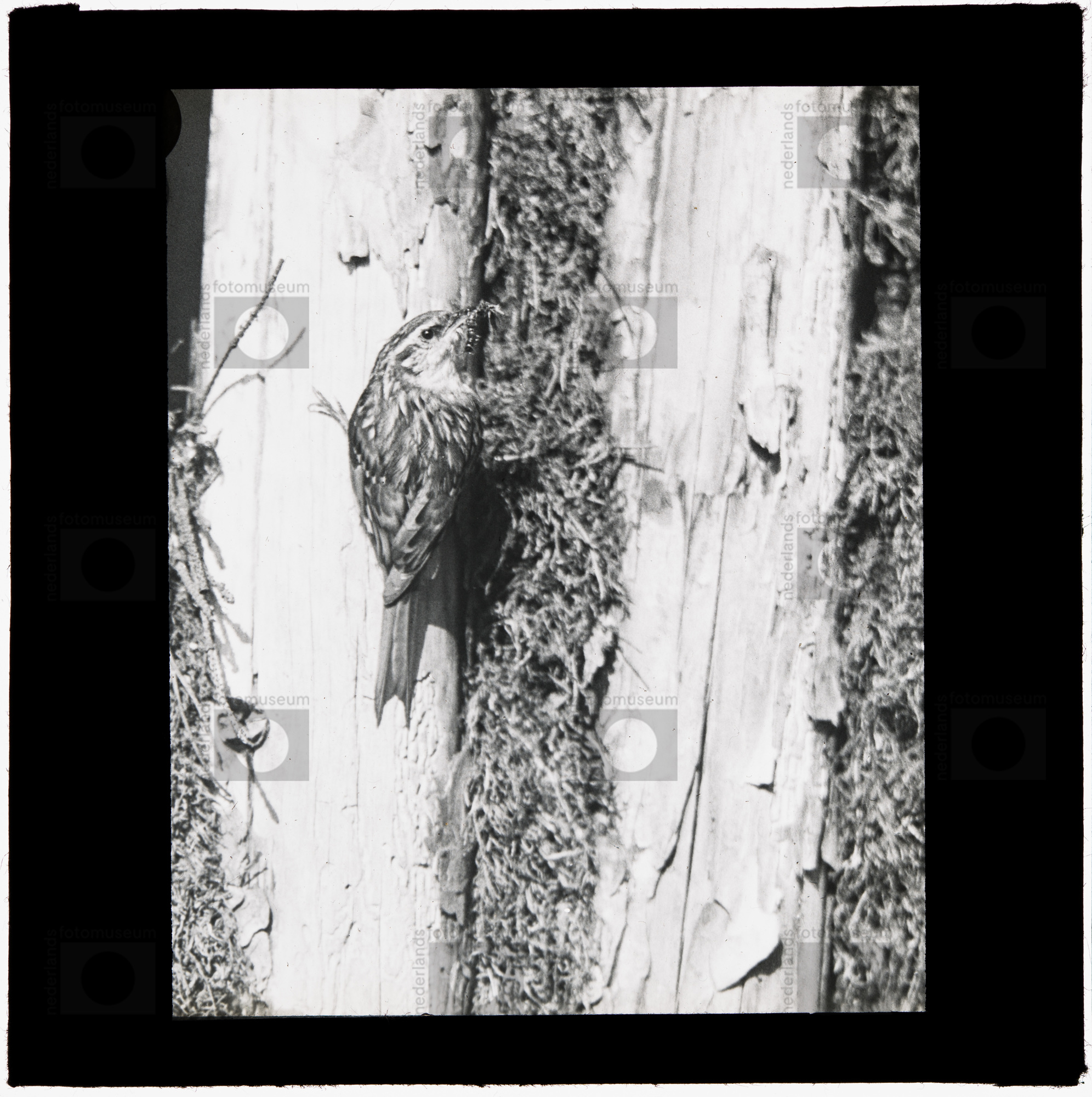 Boomkruiper bi nestholte, met voer (1925-1940)