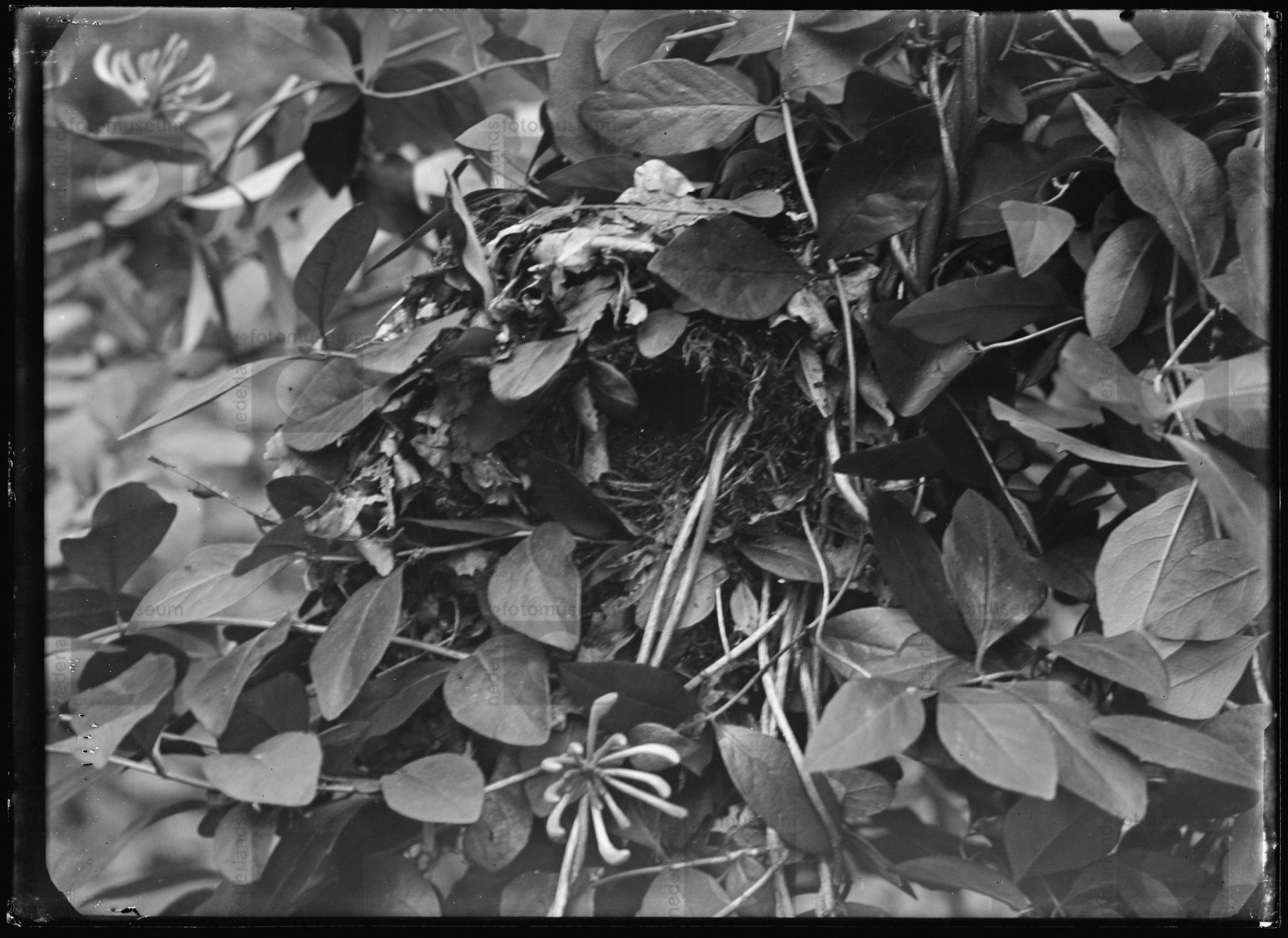 Nest van Winterkoning in Wilde kamperfoelie, Gietelo...