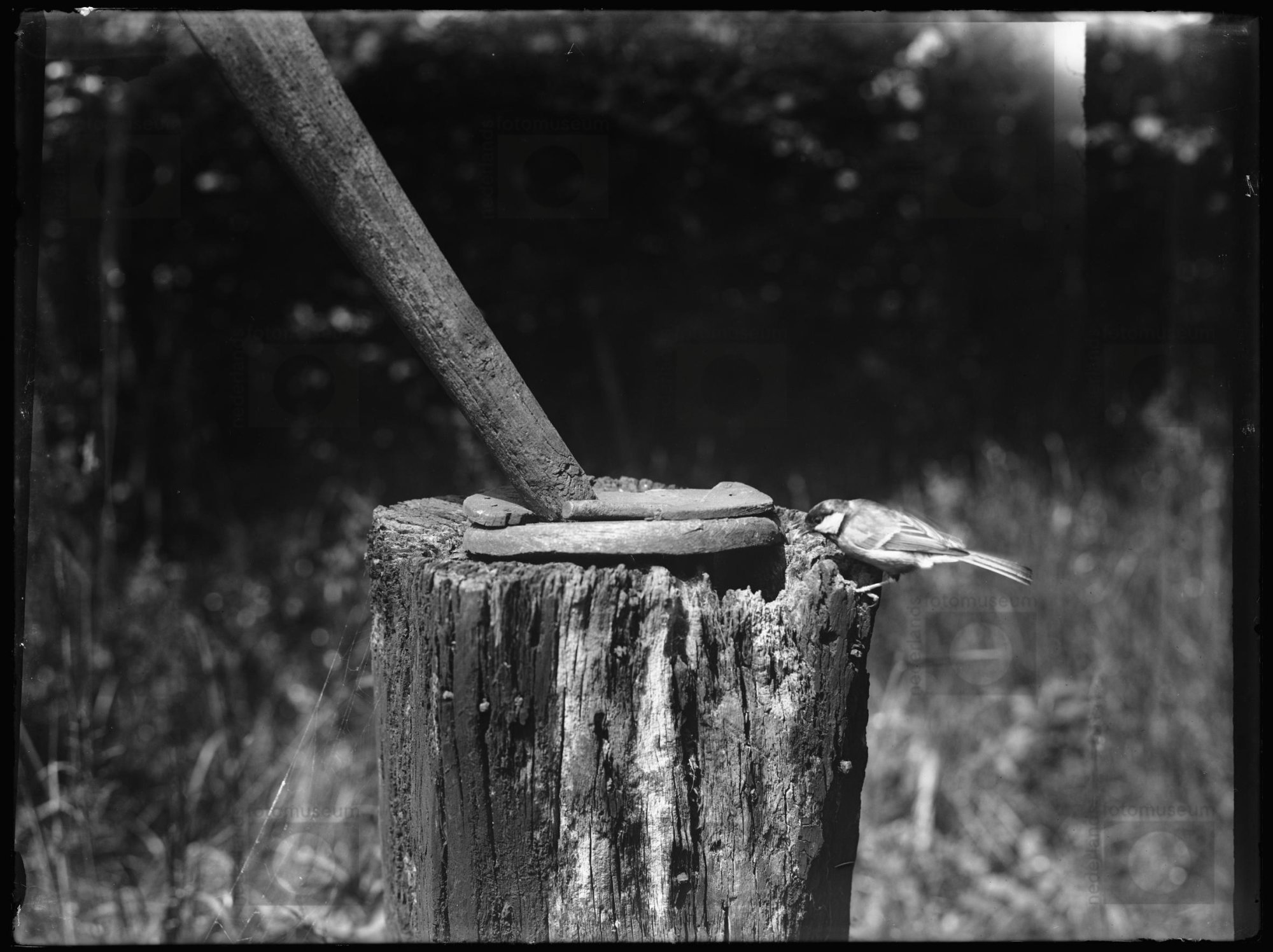 Koolmees bij nest in oude pomp, Twello (1906)