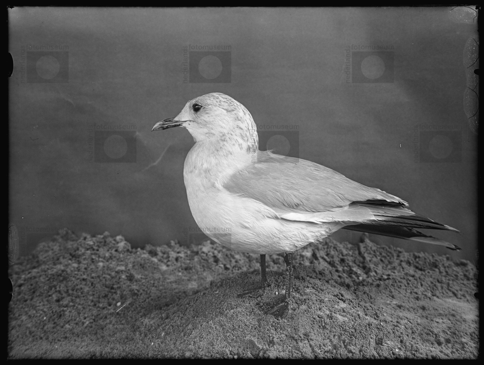 Opgezette Stormmeeuw in winterkleed in woning van Ri...