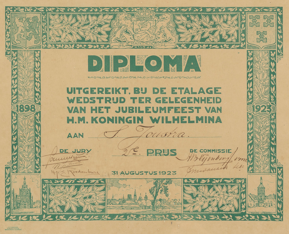 Diploma uit 1923, in het kader van etalagewedstrijd,...