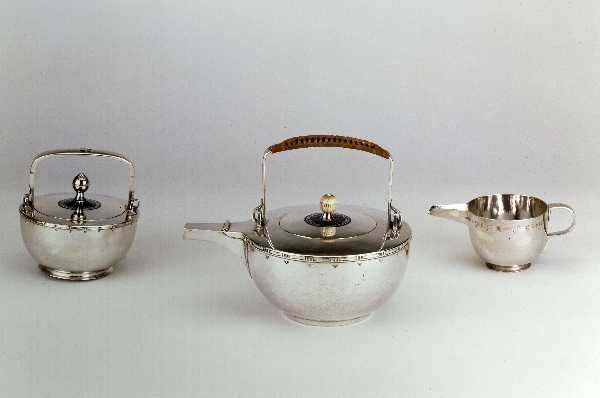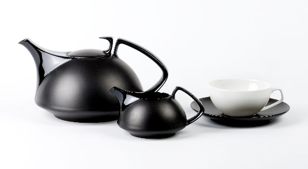 Vierdelig servies bestaande uit zwarte theepot, melk...