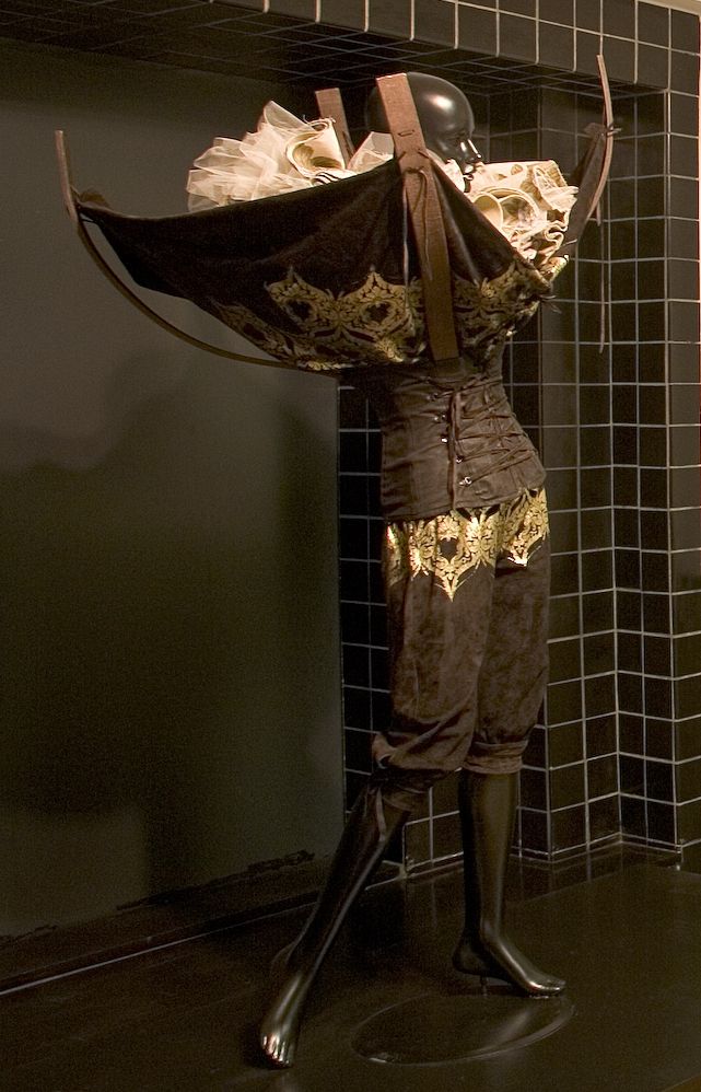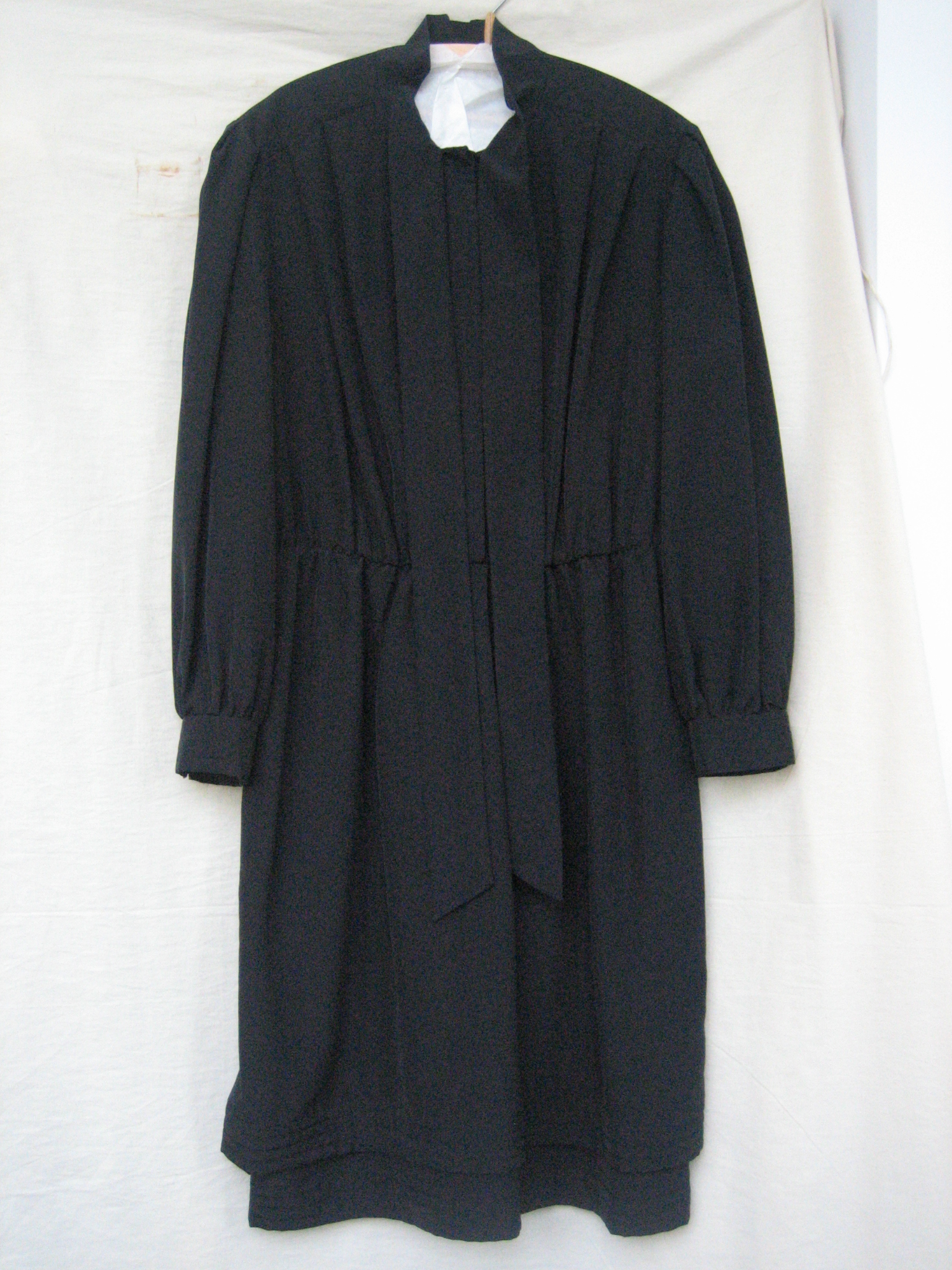 Ensemble van zwarte wol met rode bies, bestaat uit l...