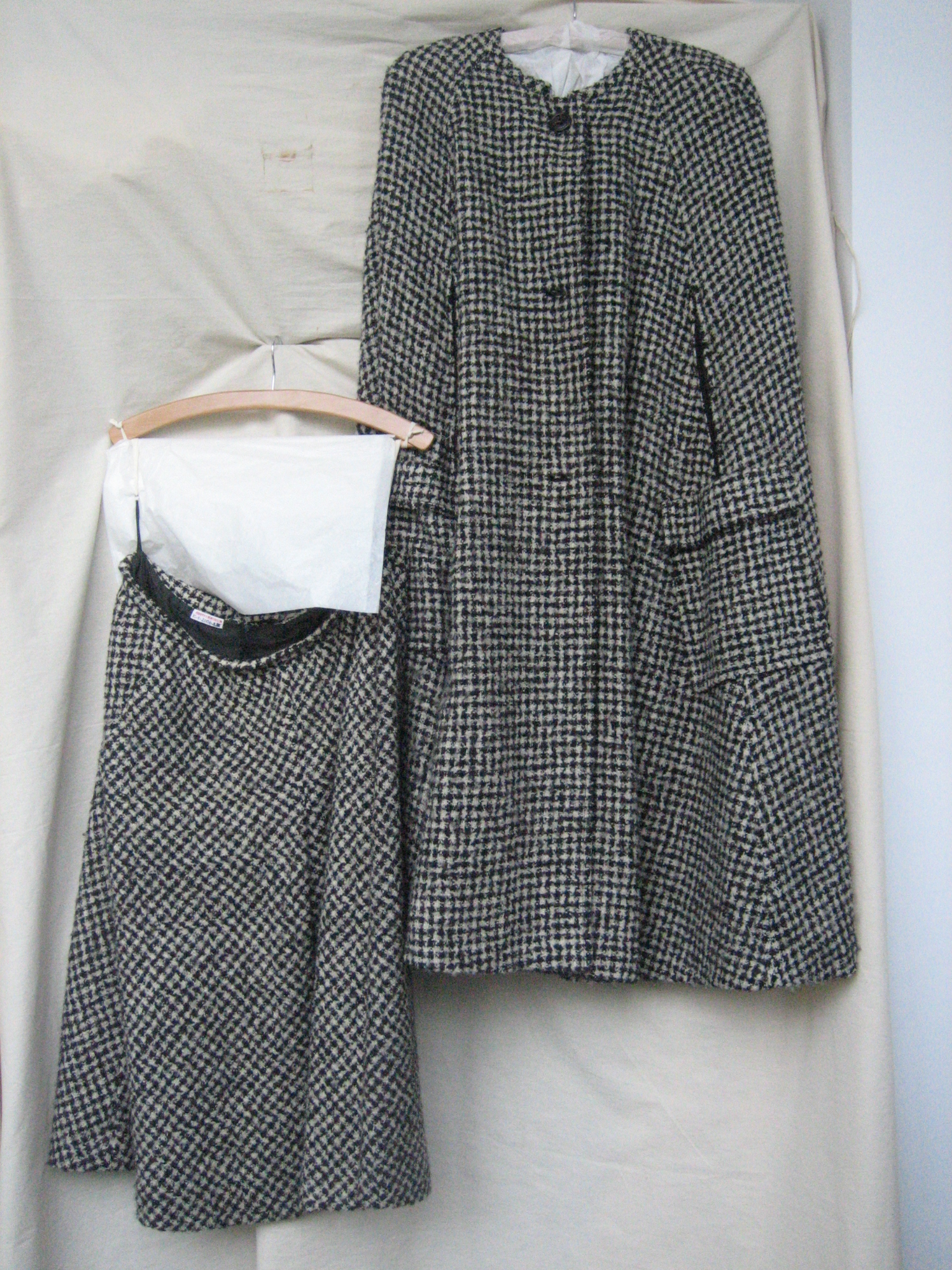 Ensemble bestaande uit tweed jasje, rok en overrok v...