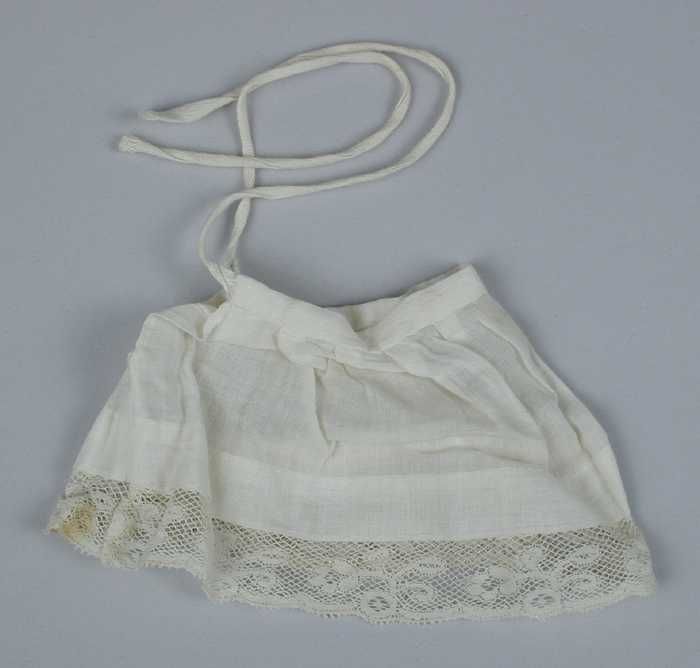 Poppenonderrok van wit katoen met kantstrookje langs...