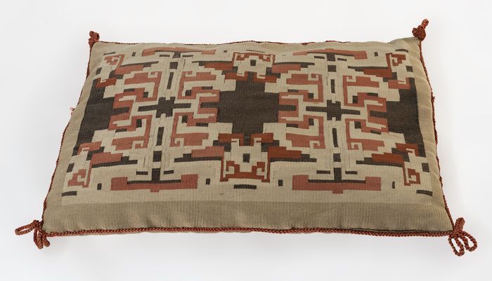 Kussen in tapisserie en kelim, in verschoten roodbru...