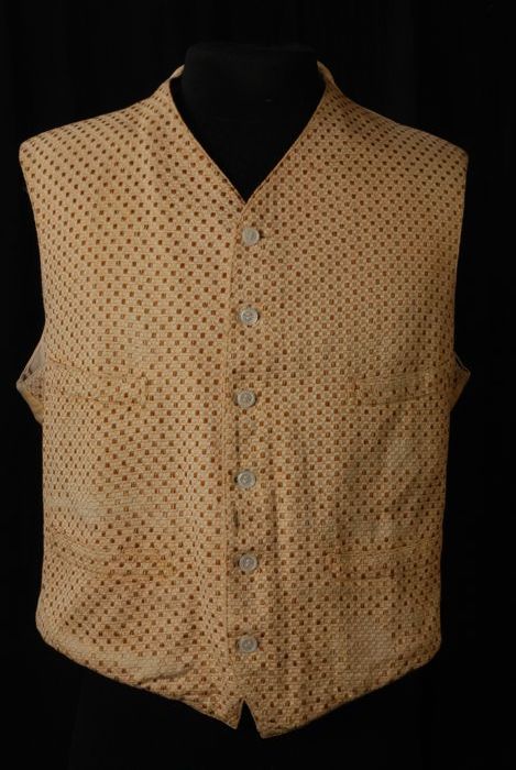 Herenvest van crèmekleurig katoen met oranje beige e...