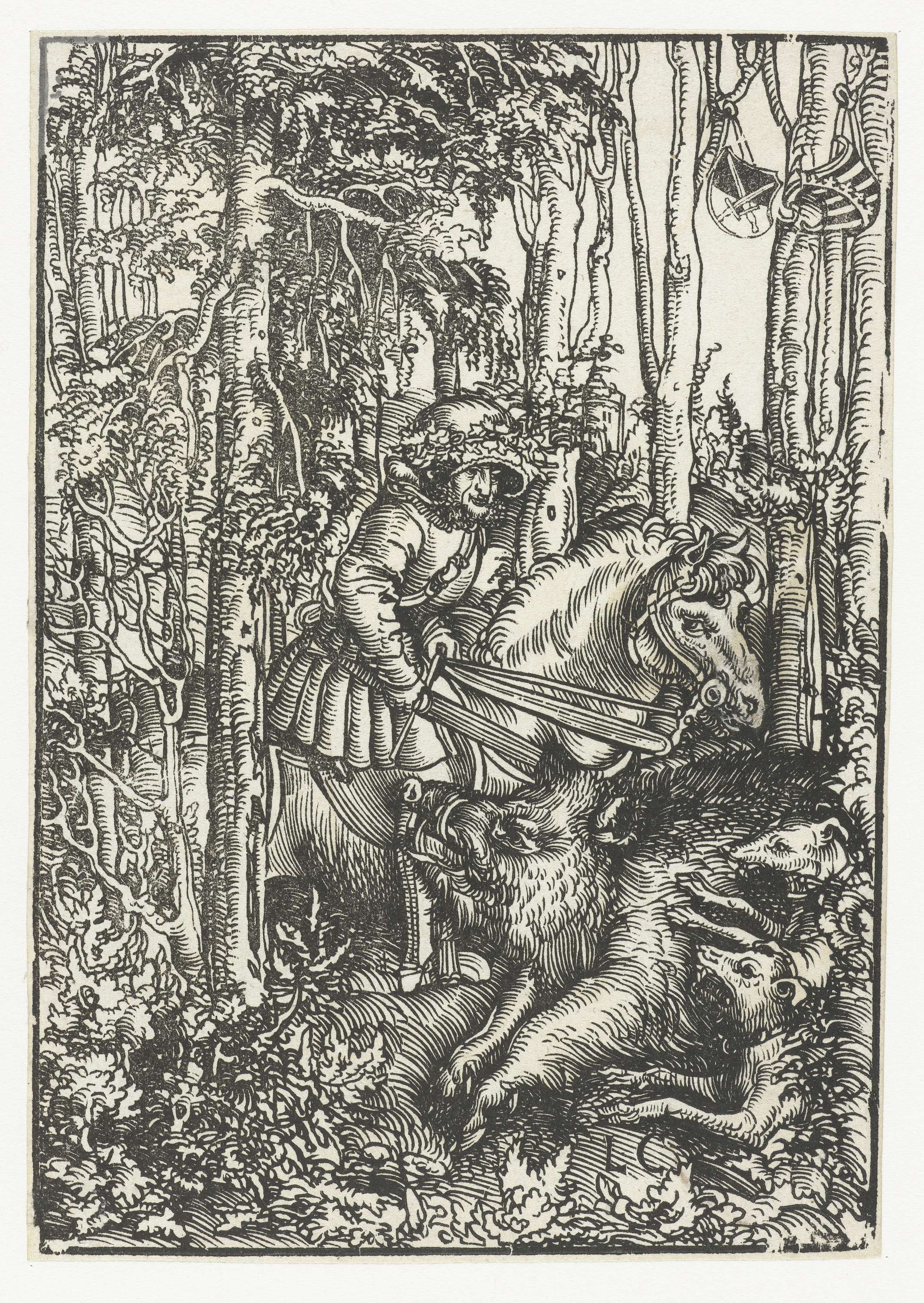 Man te paard jaagt op wild zwijn
