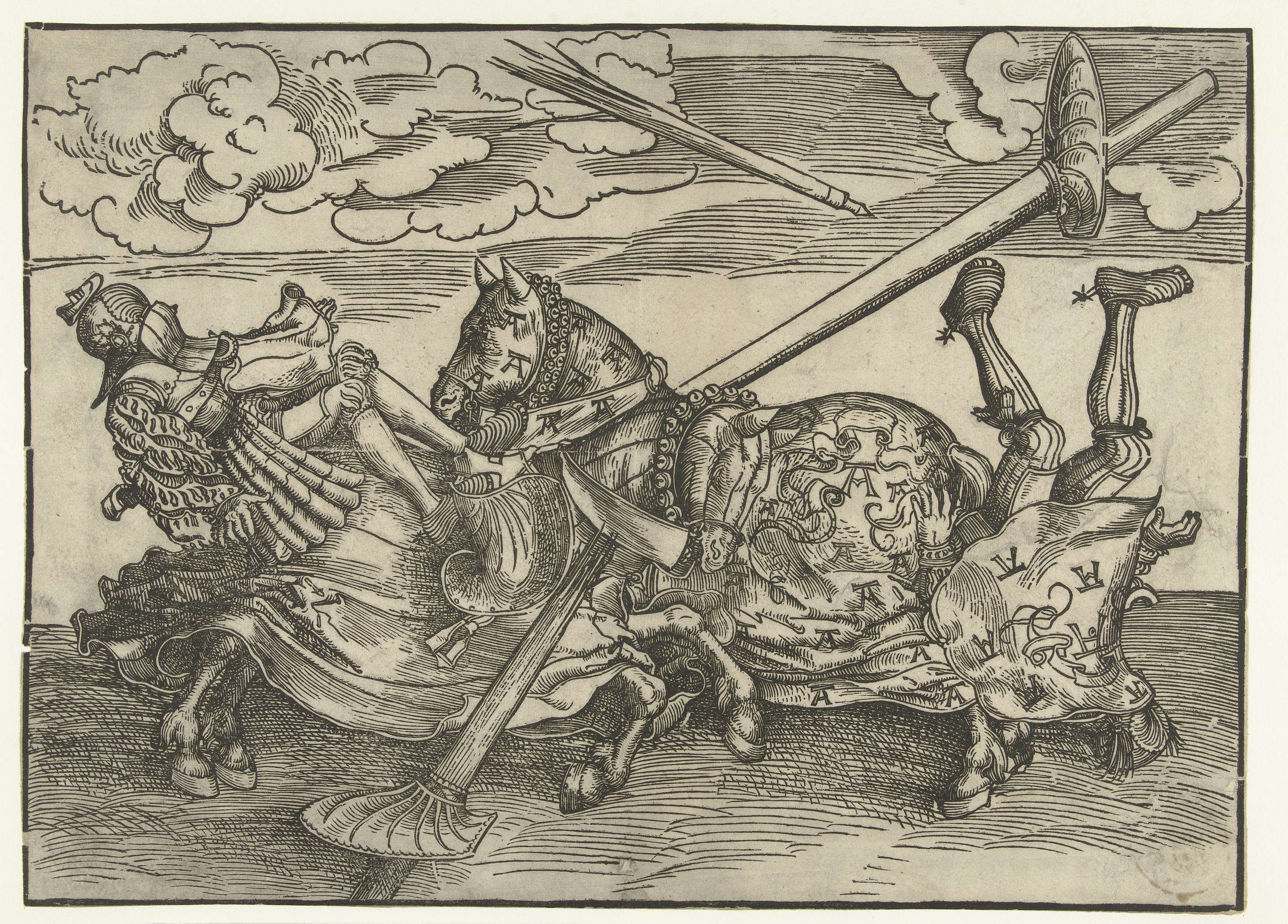 Duits toernooi met twee edelmannen als ridders te paard