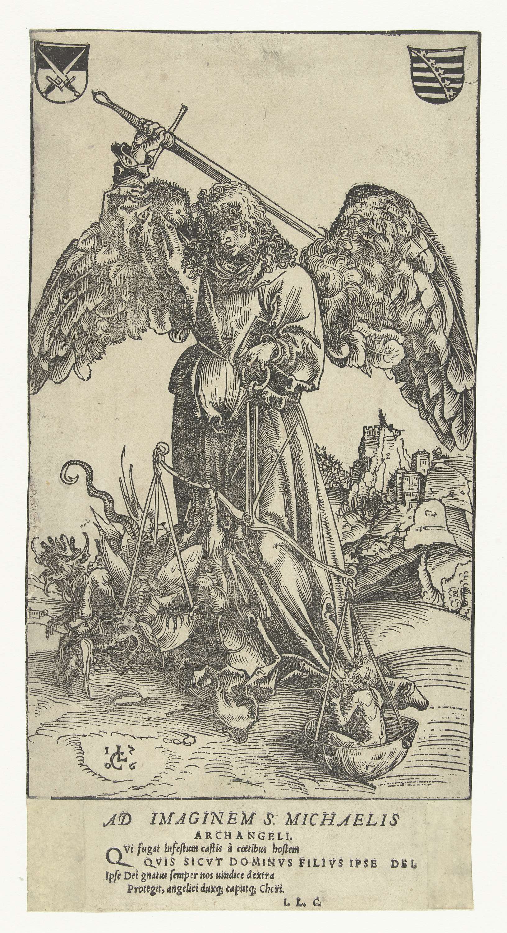 Aartsengel Michaël doodt Satan en weegt een ziel