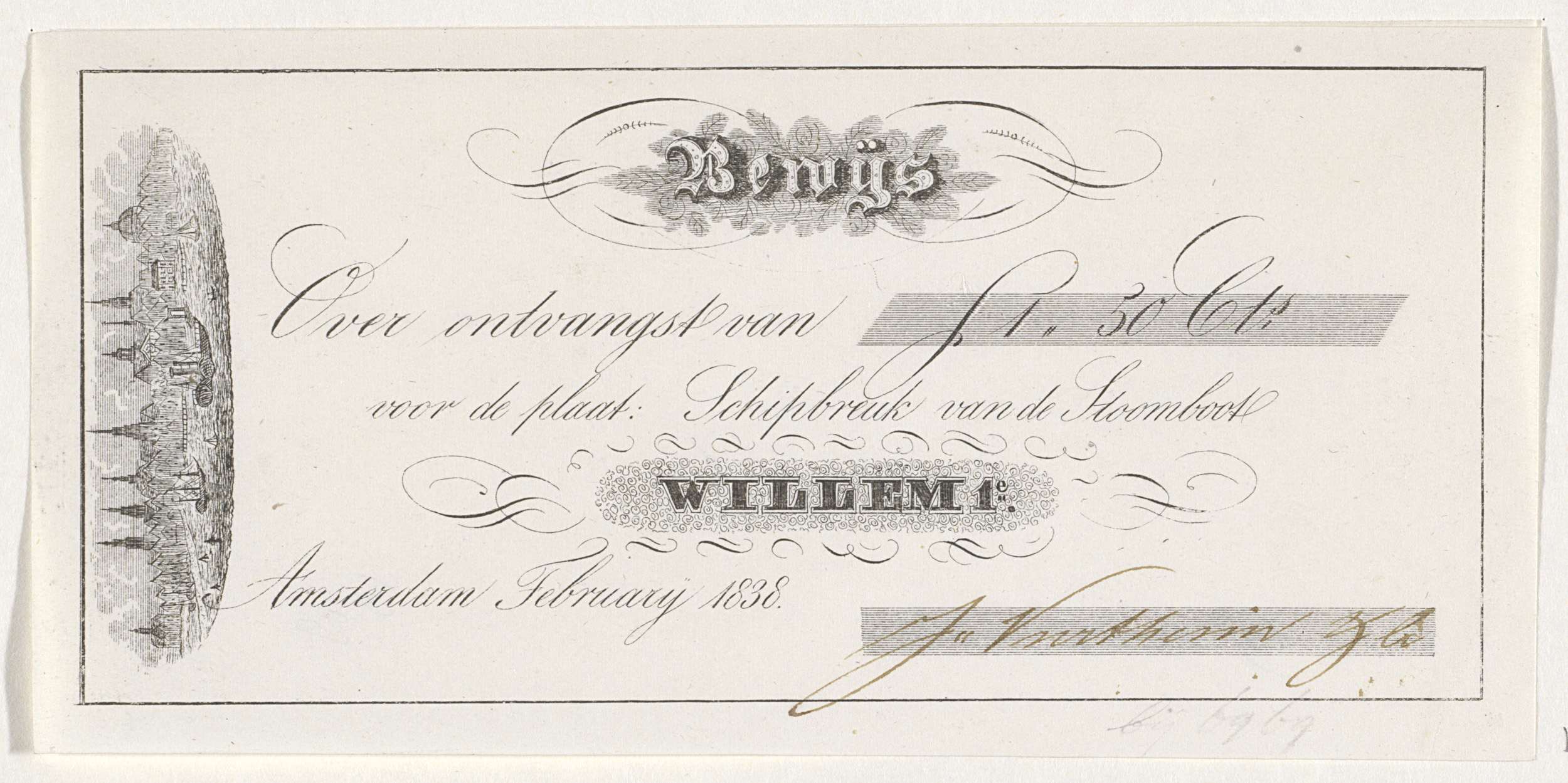 Ontvangstbewijs voor de aankoop van de prent met de ...