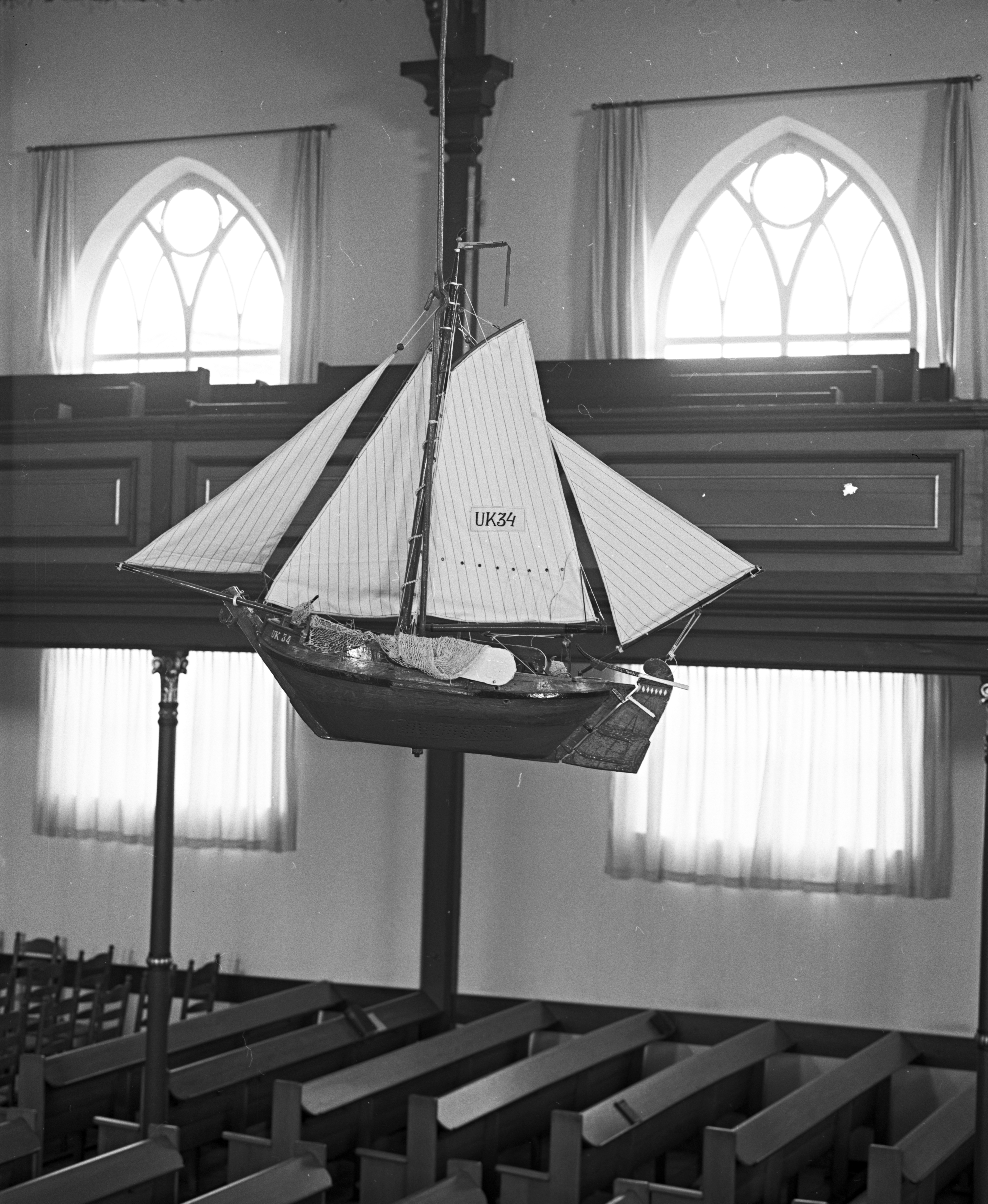 Visserskleding en dwarskuilen drogend aan boord van ...