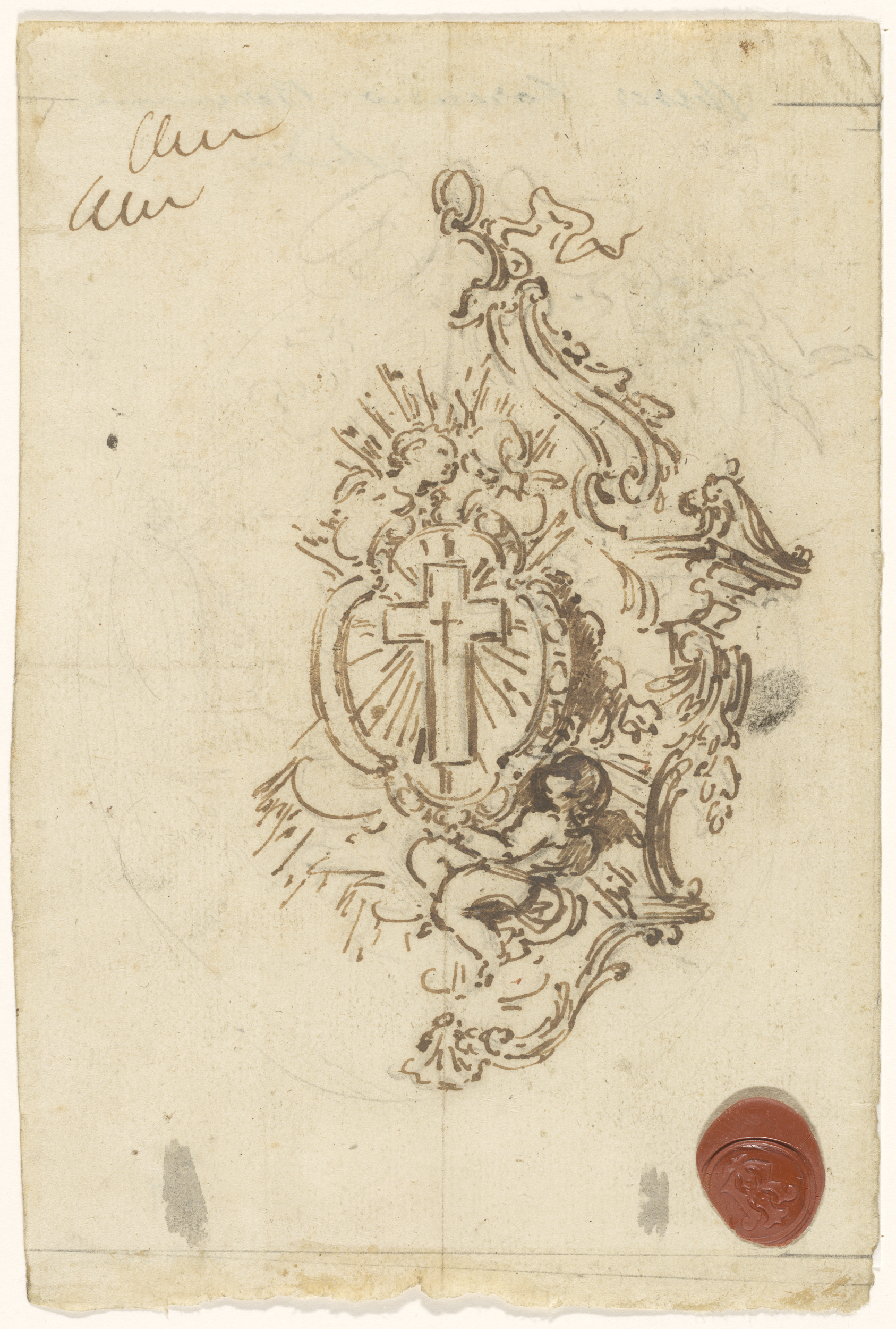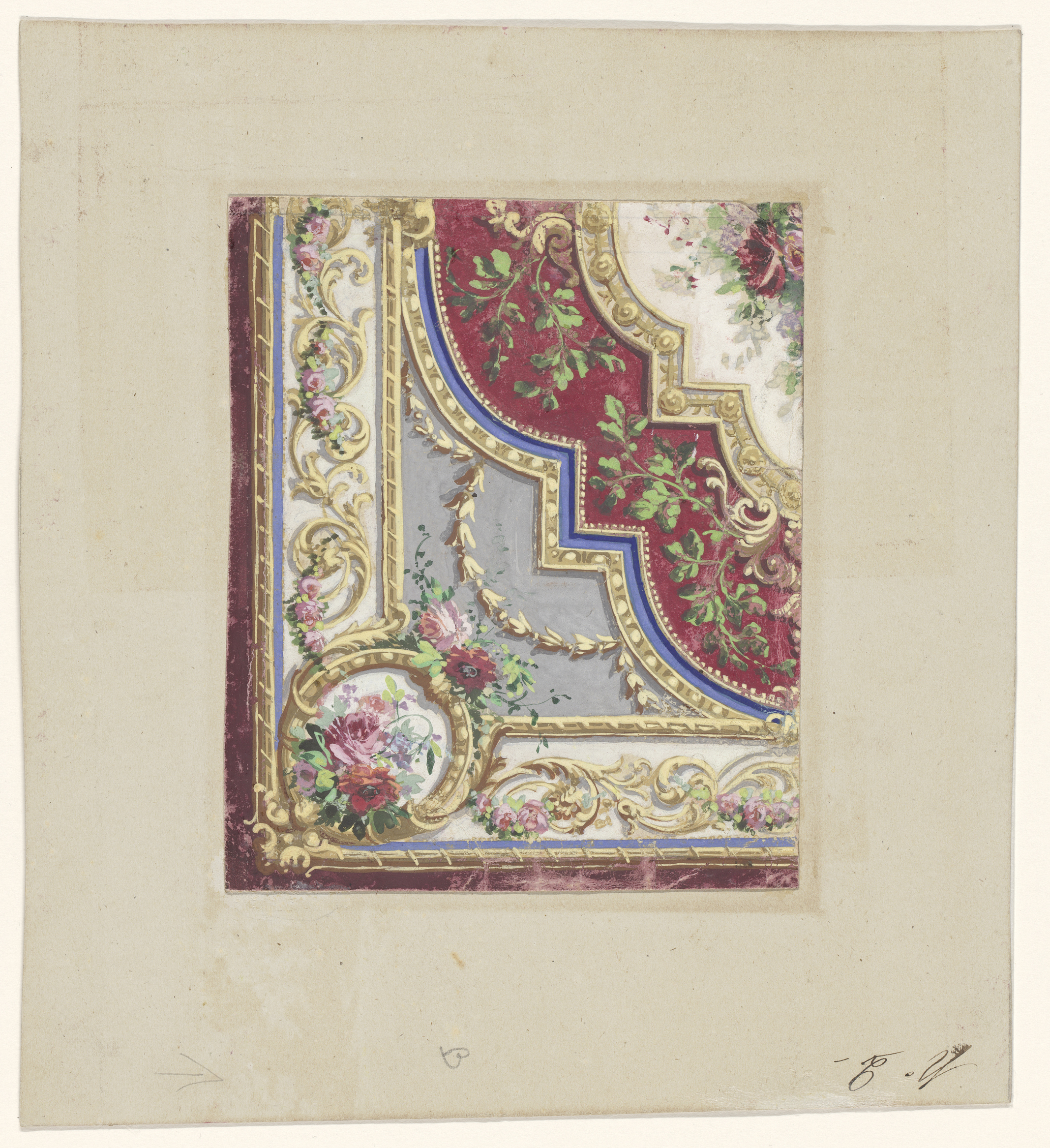Ontwerp voor de verguld bronzen montuur van een pors...