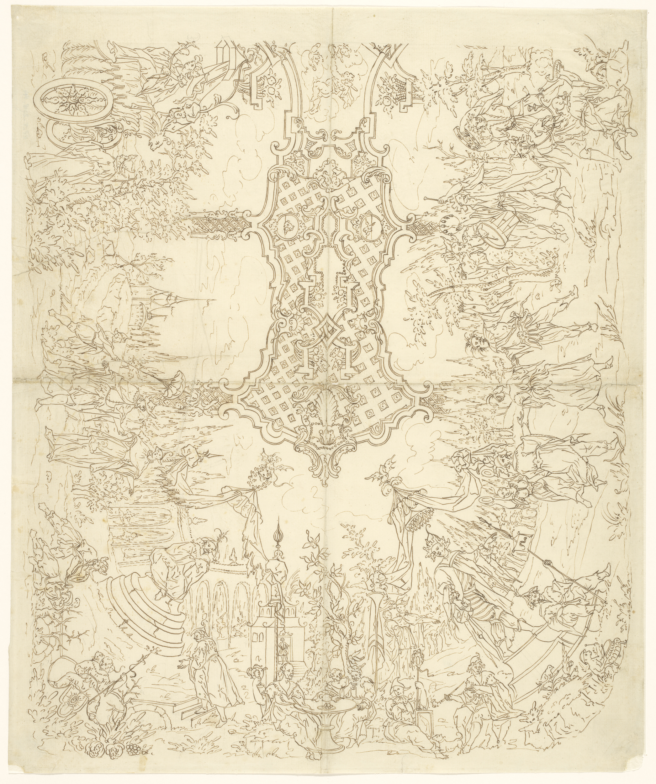 Ontwerp voor een gedrukte stof (toile de Jouy), met ...