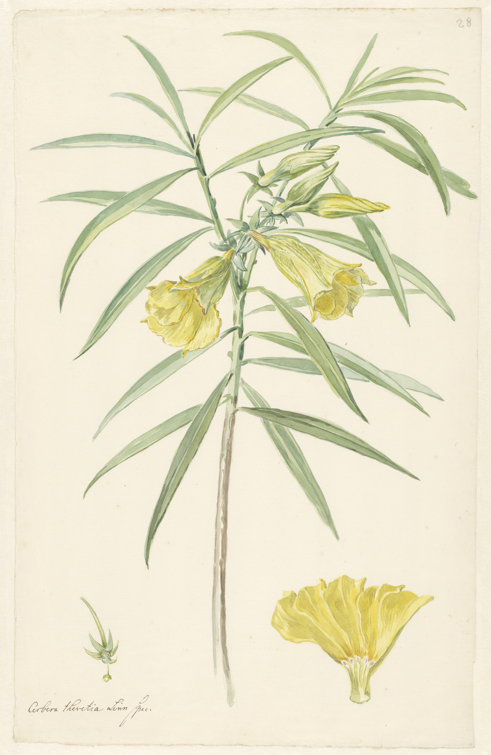 Tak van een gele bloem (soort lelie) met details van...