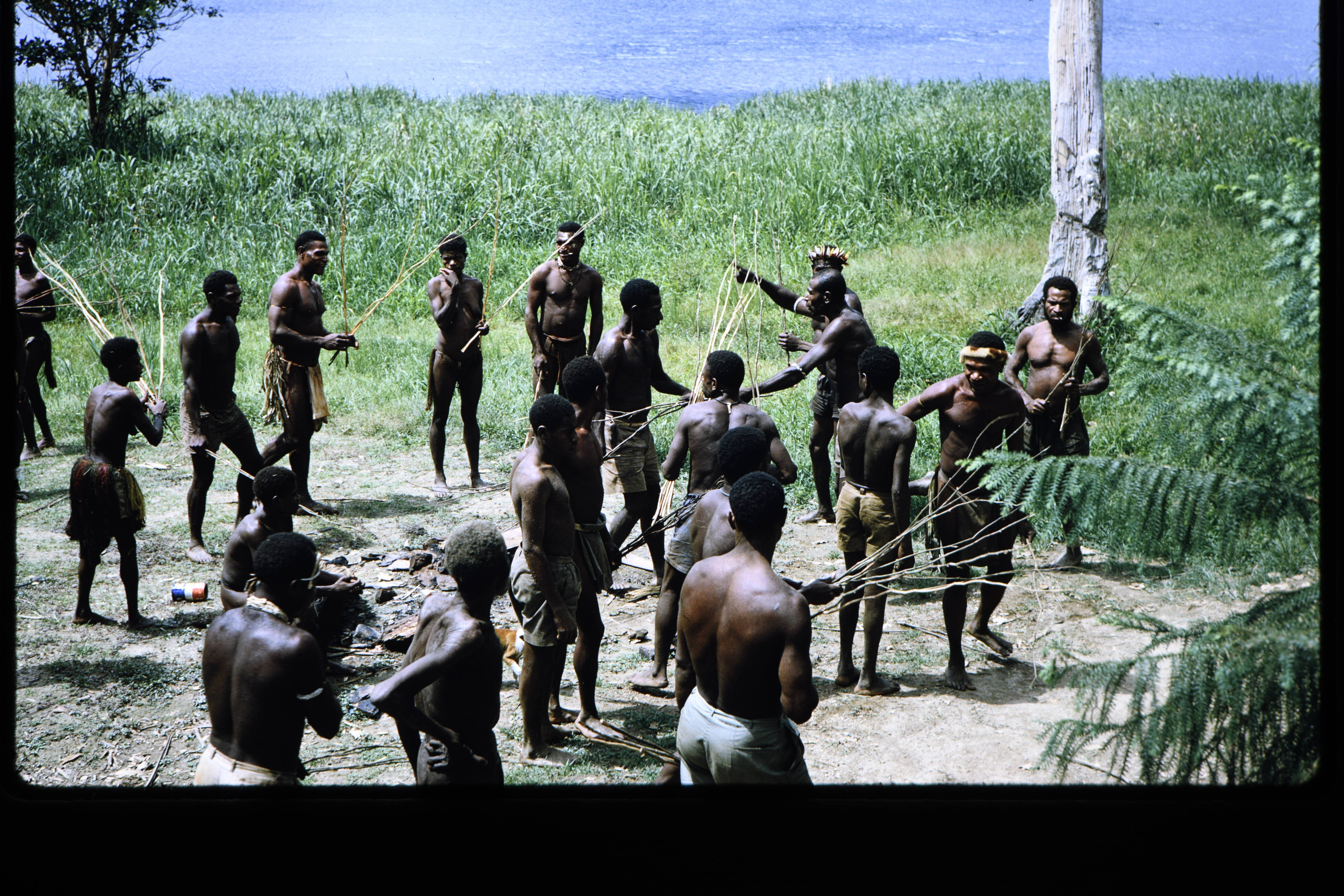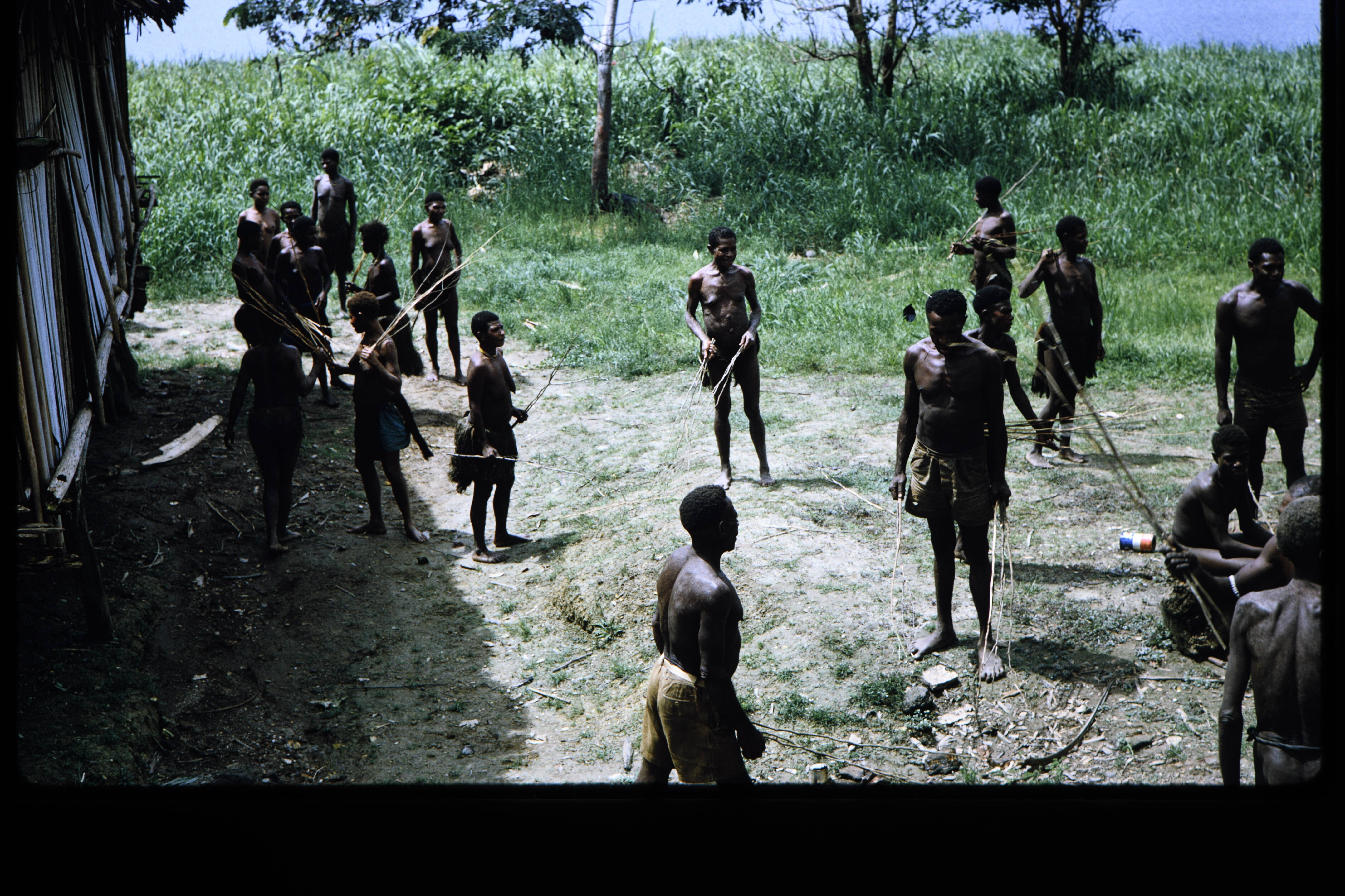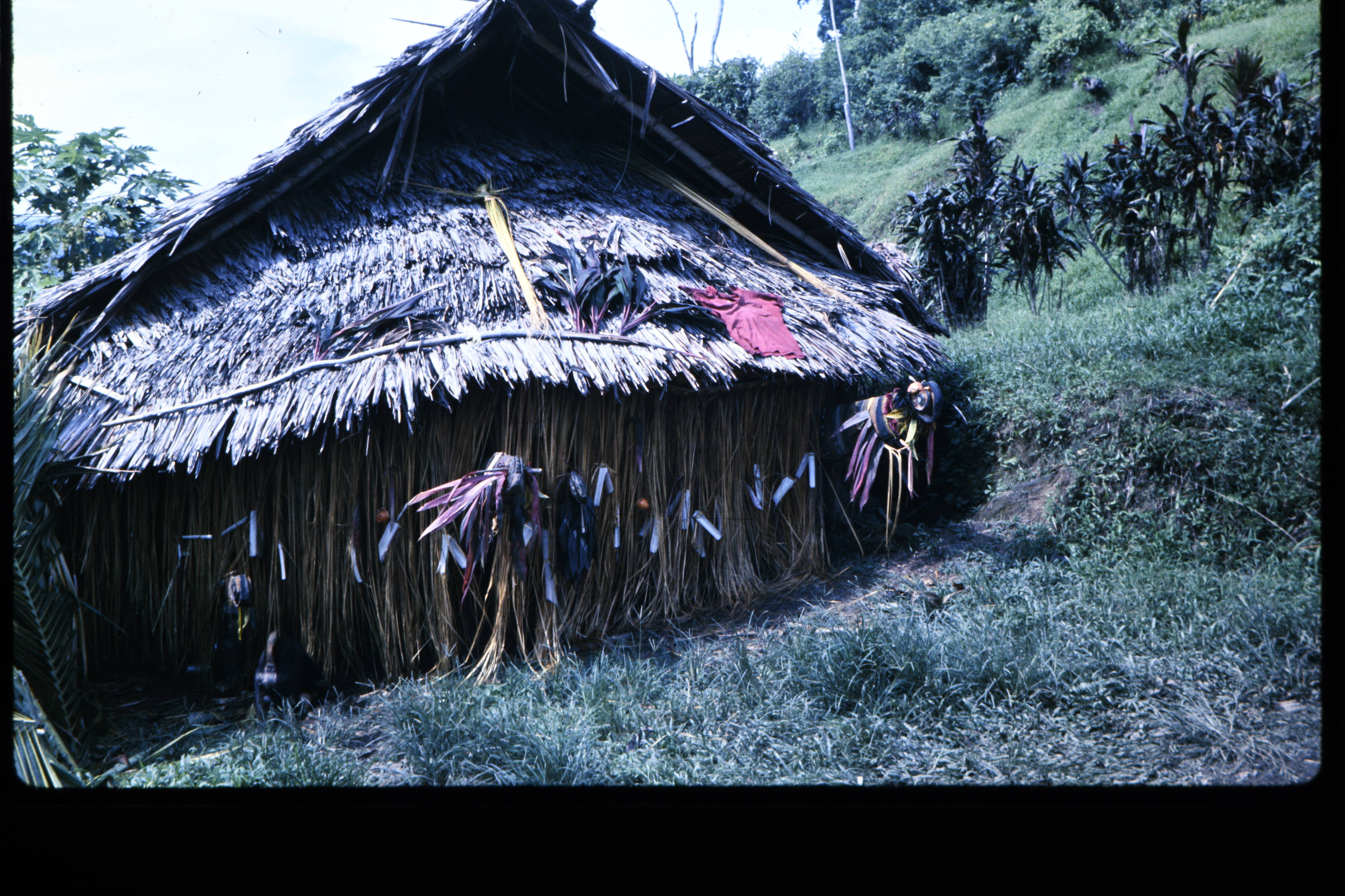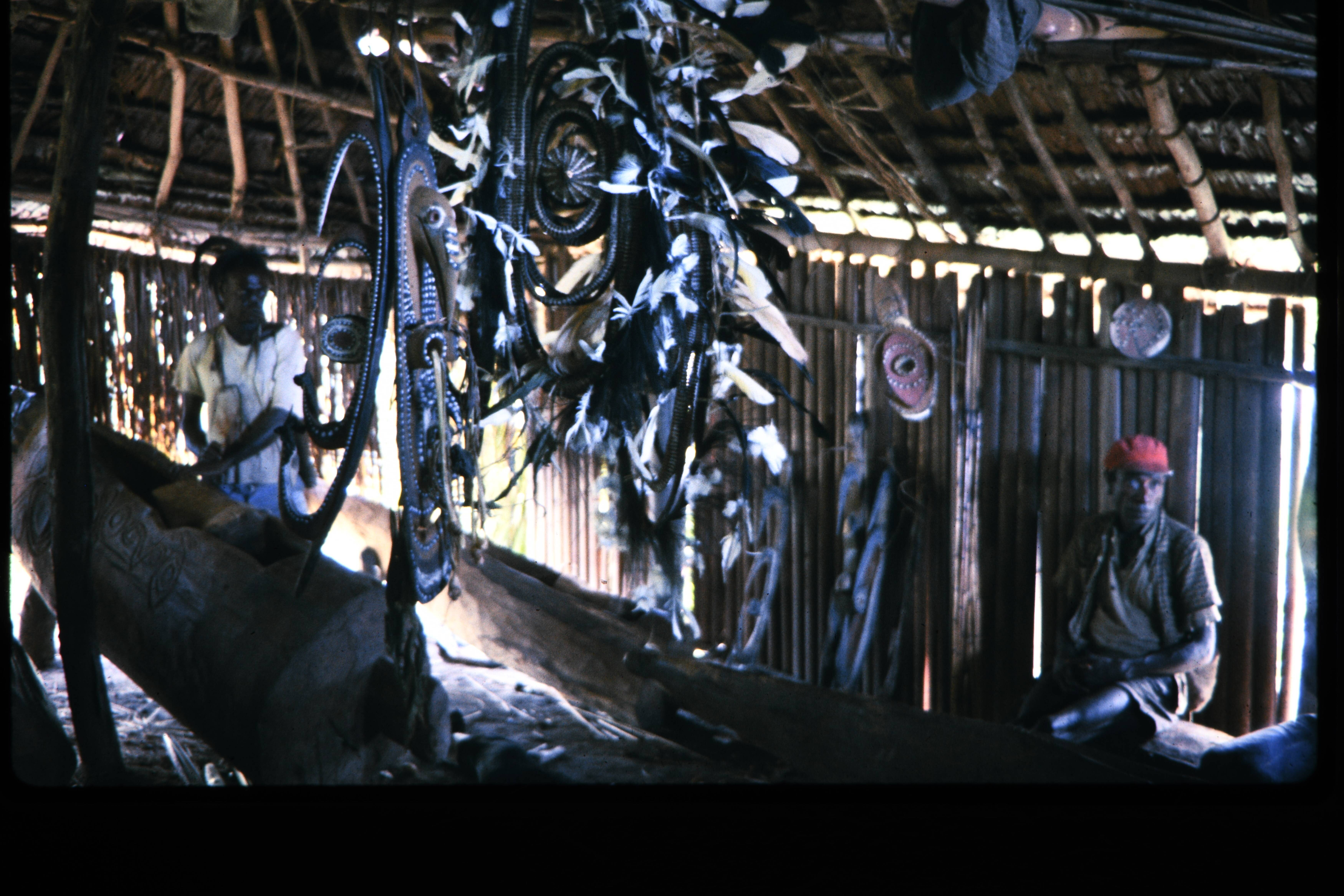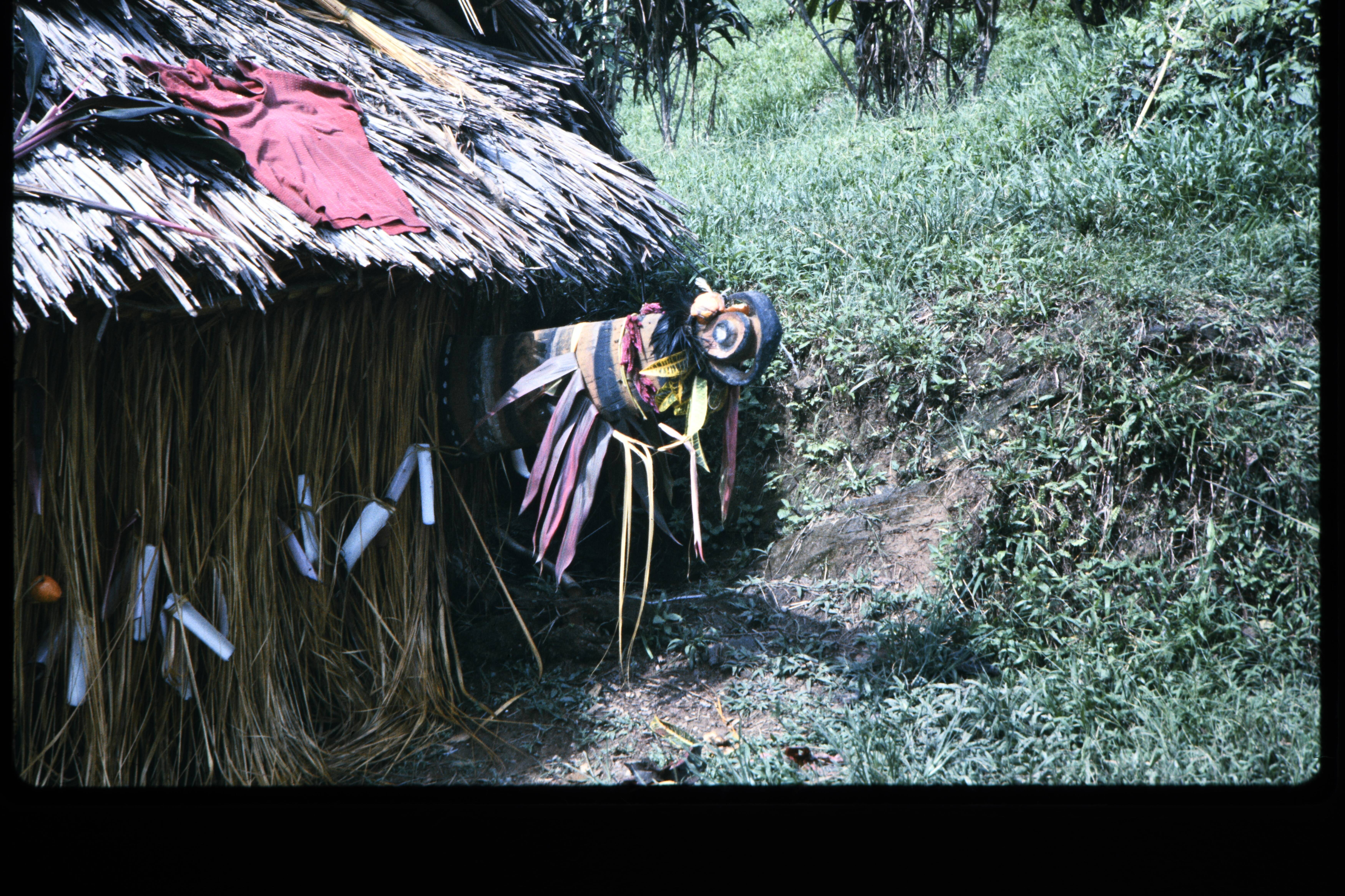 Bunch of sacred objects (plaited loopmasks, woodens ...