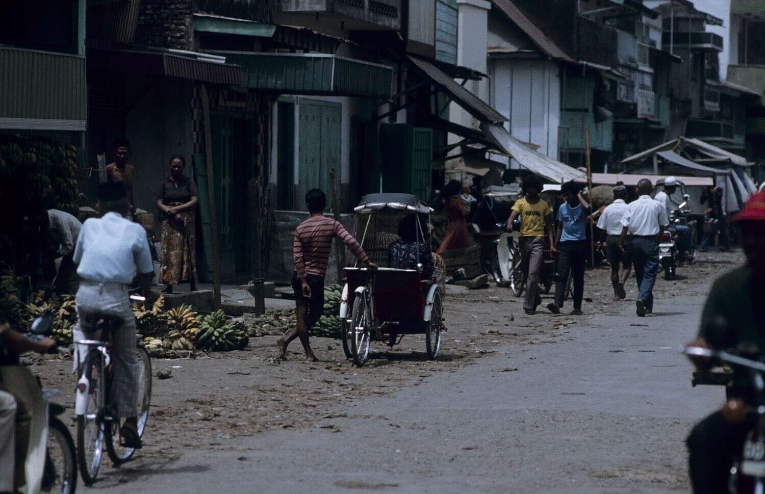 Man met handkar in de marktstraat van Kota Ambon, Mo...