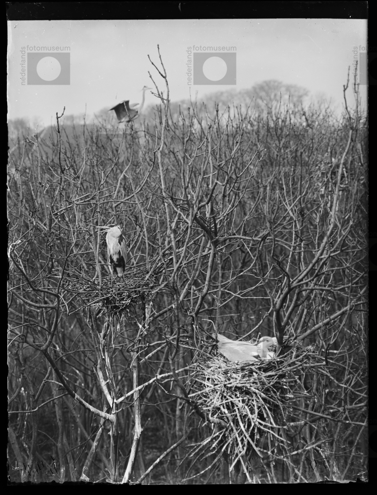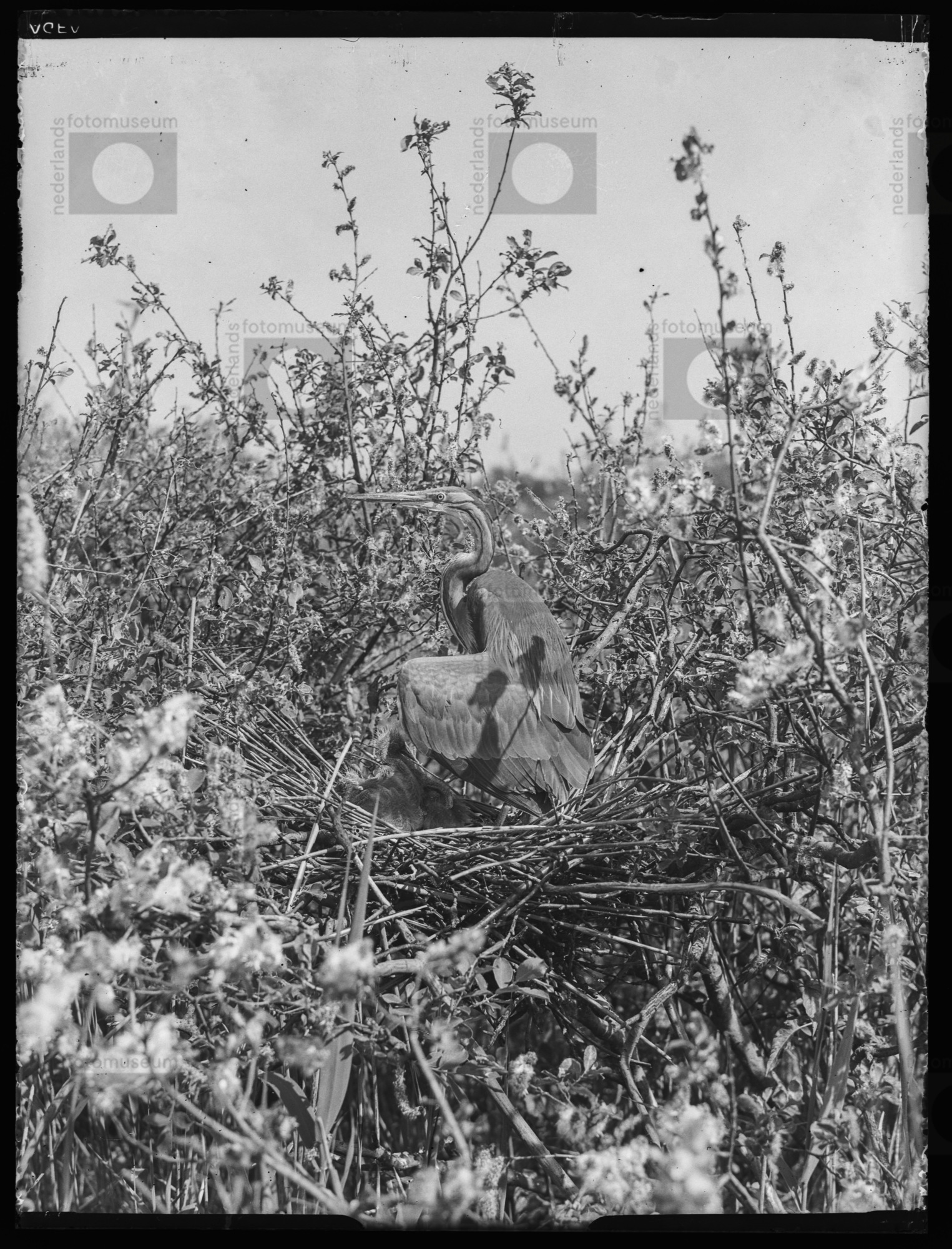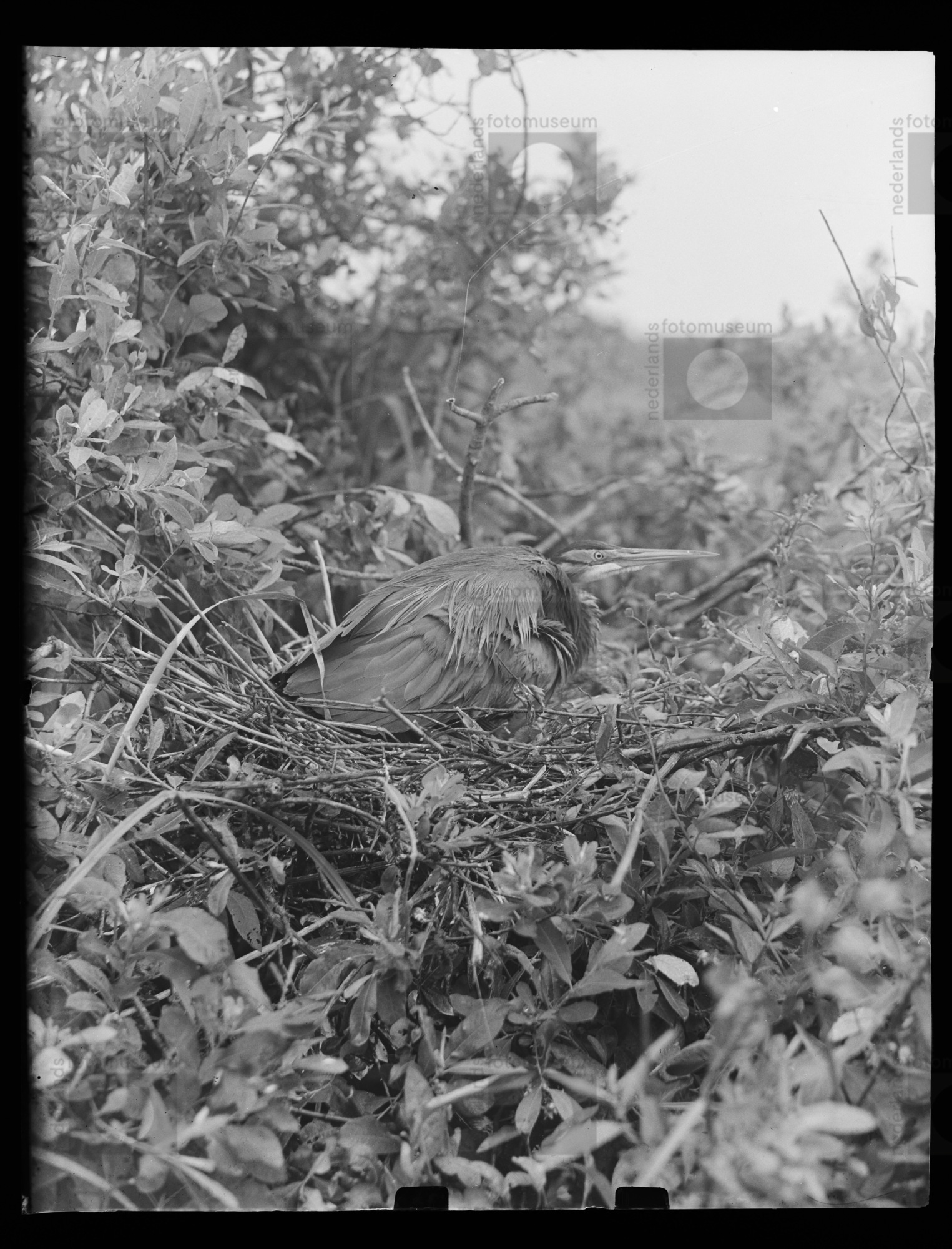 Purperreiger op nest, Naardermeer (1950)