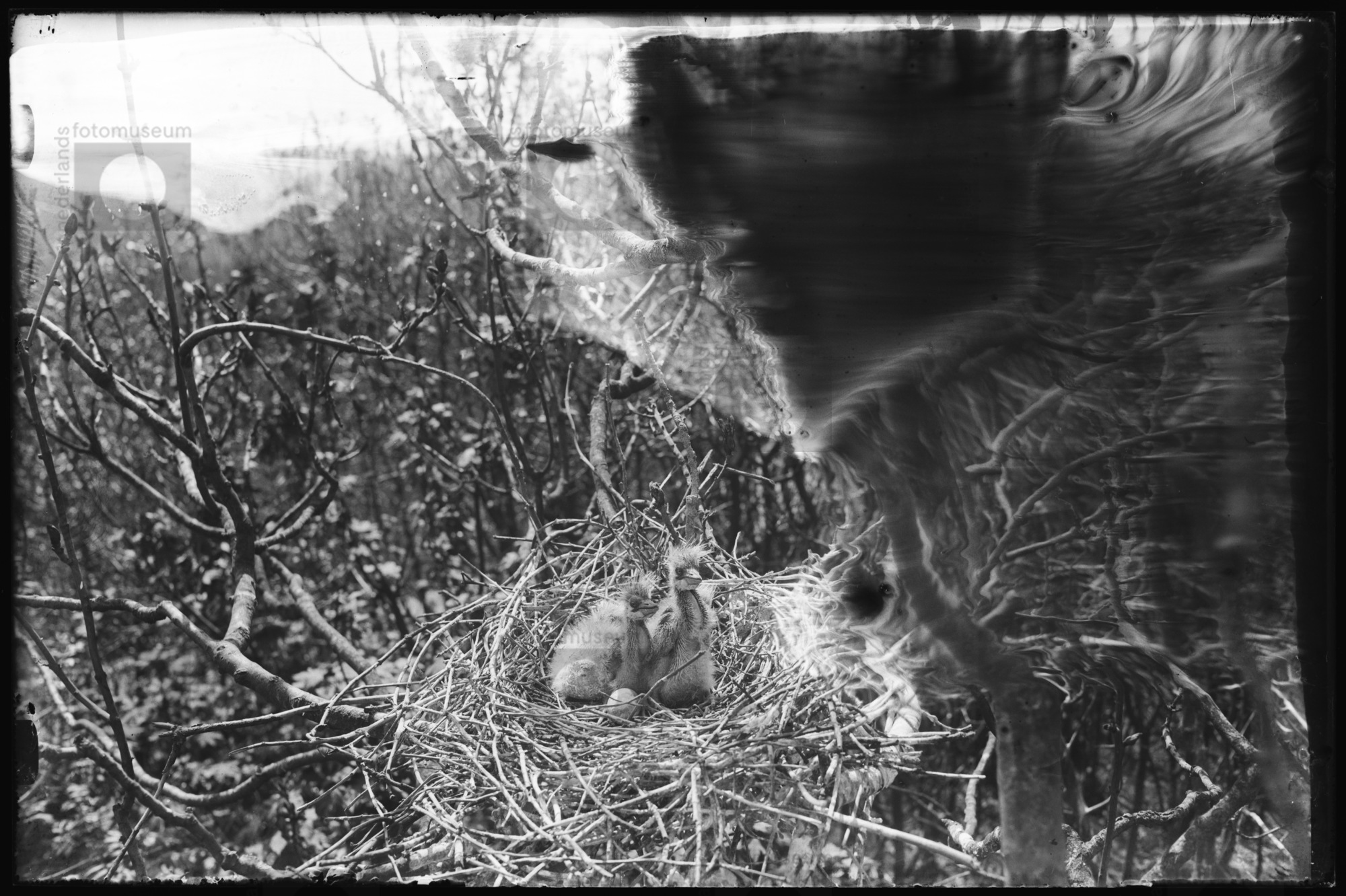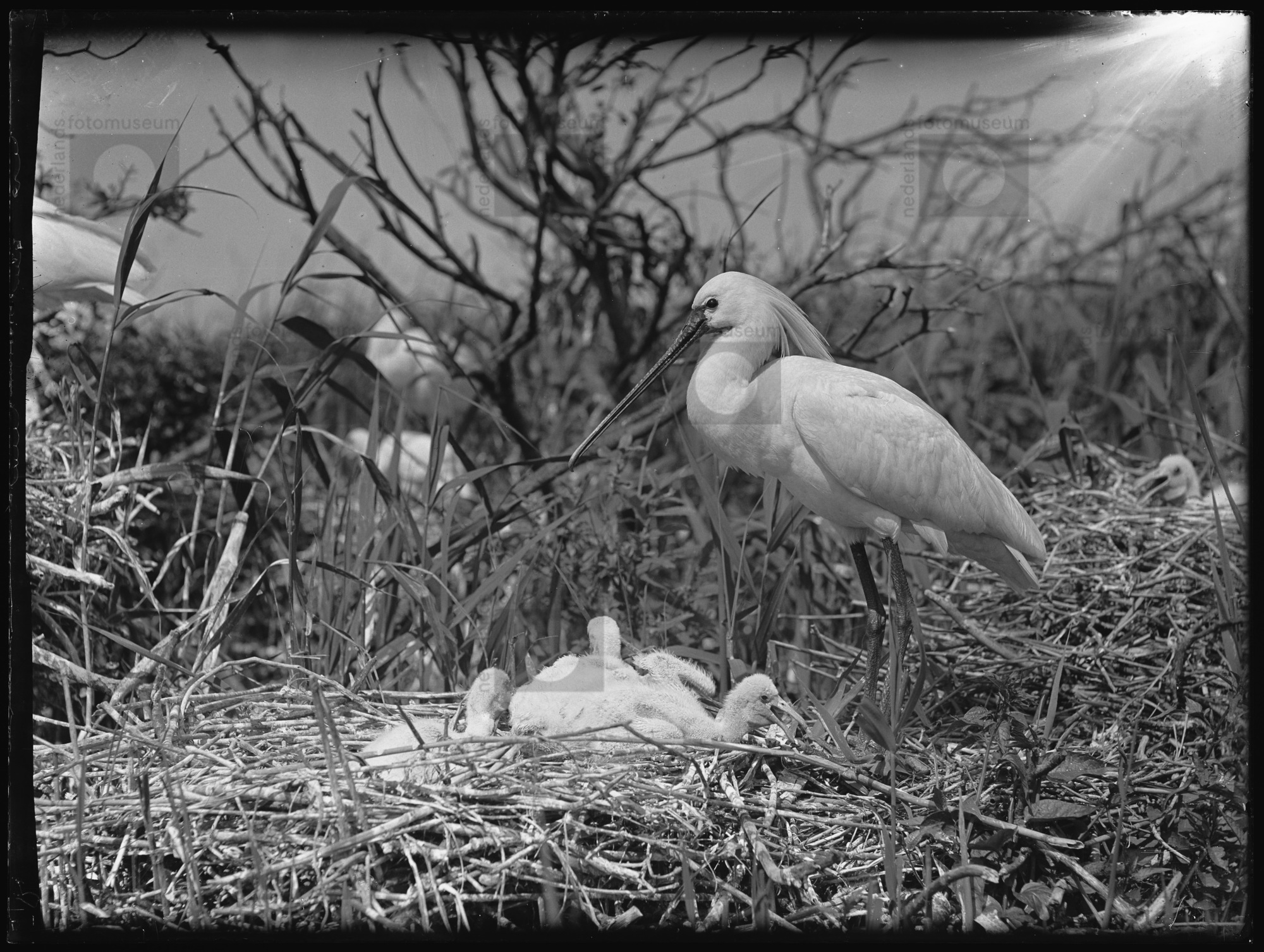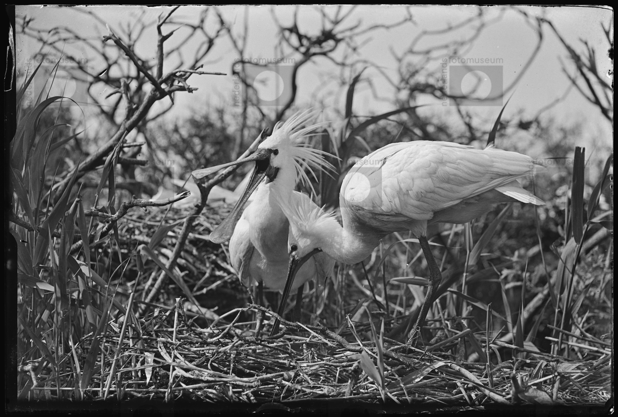 Purperreiger op nest, Naardermeer (1950)