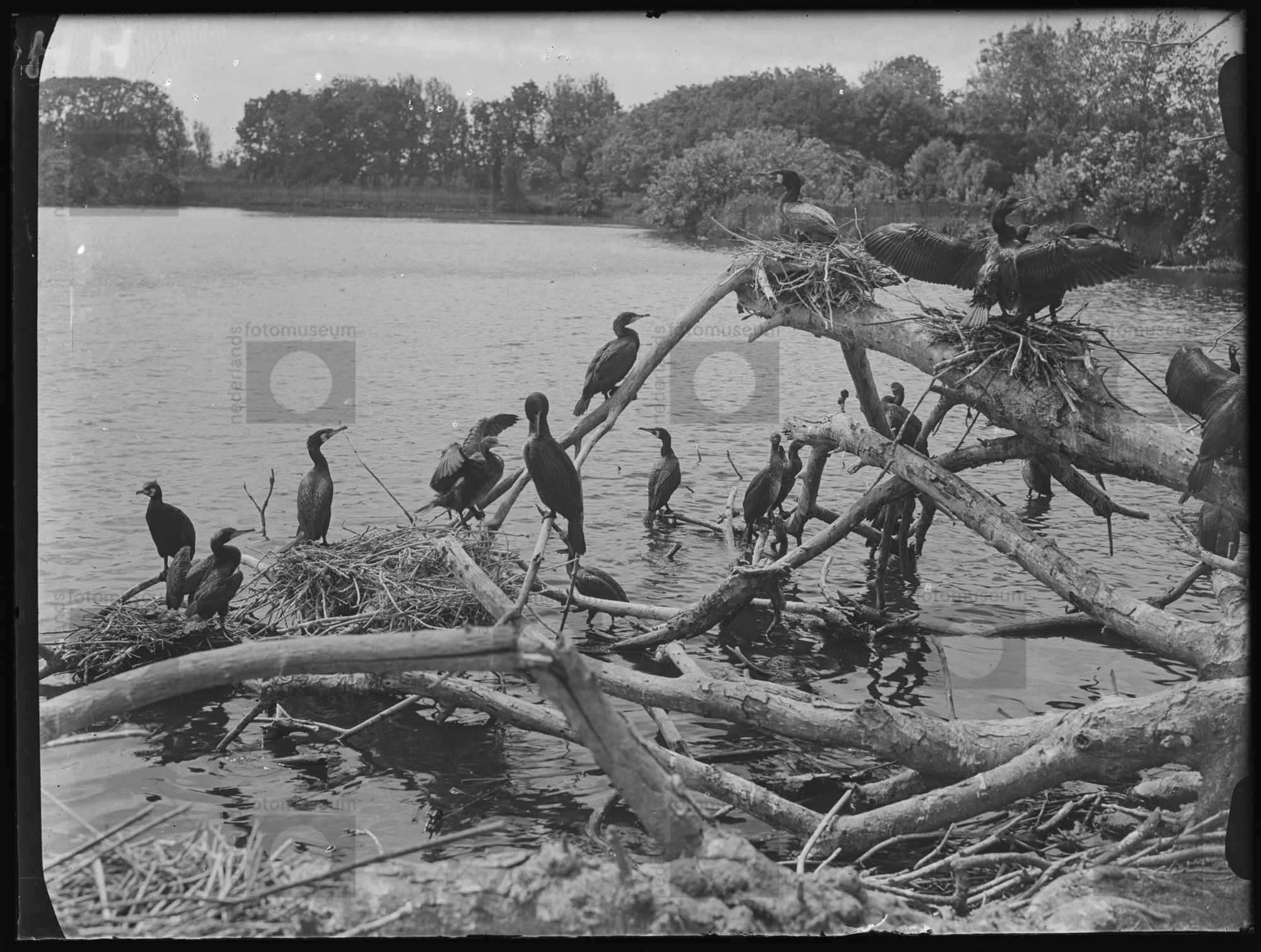 Aalscholvers in broedkolonie (1931)
