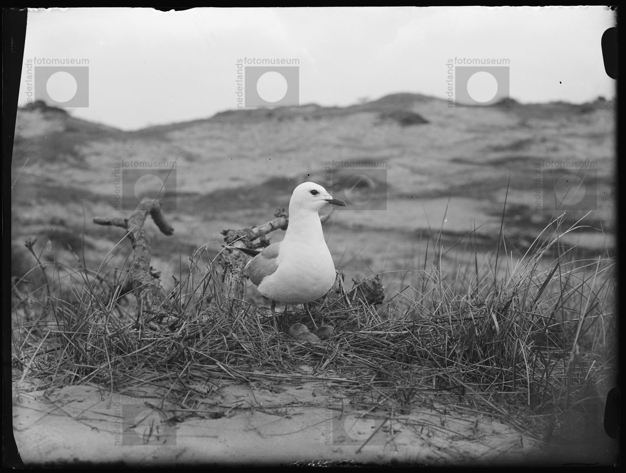 Stormmeeuw, staande op nest, Bergen (1934)