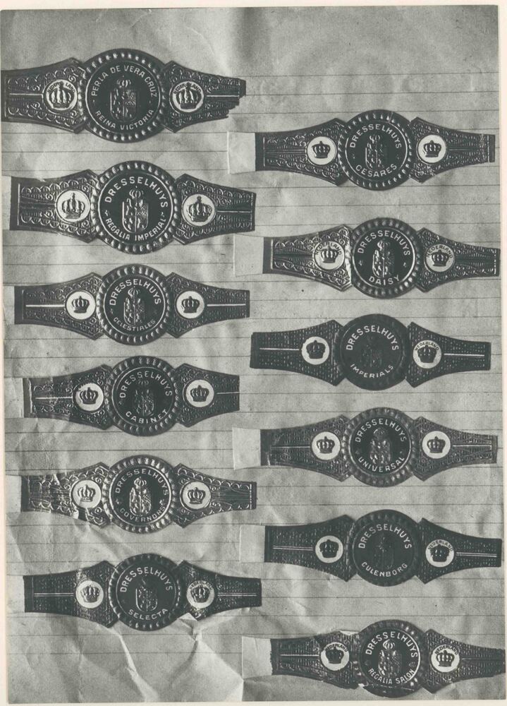 Foto, voorstellende sigarenbandjes, merken uit Culem...