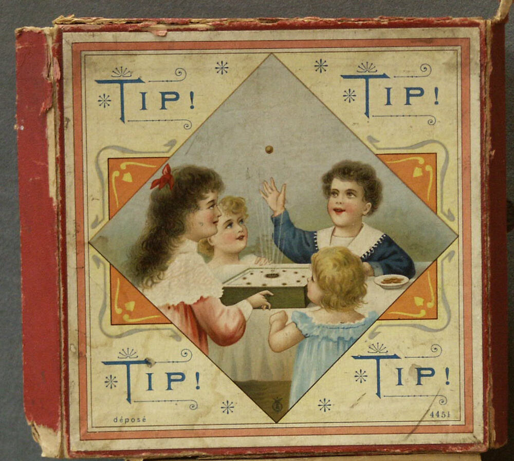 Spel voor kinderen, met wipje en kartonnen muntjes.
