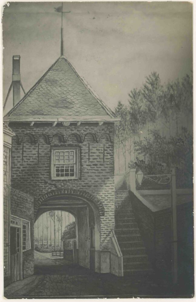 Foto, voorstellende een aquarel van de Slotpoort te ...
