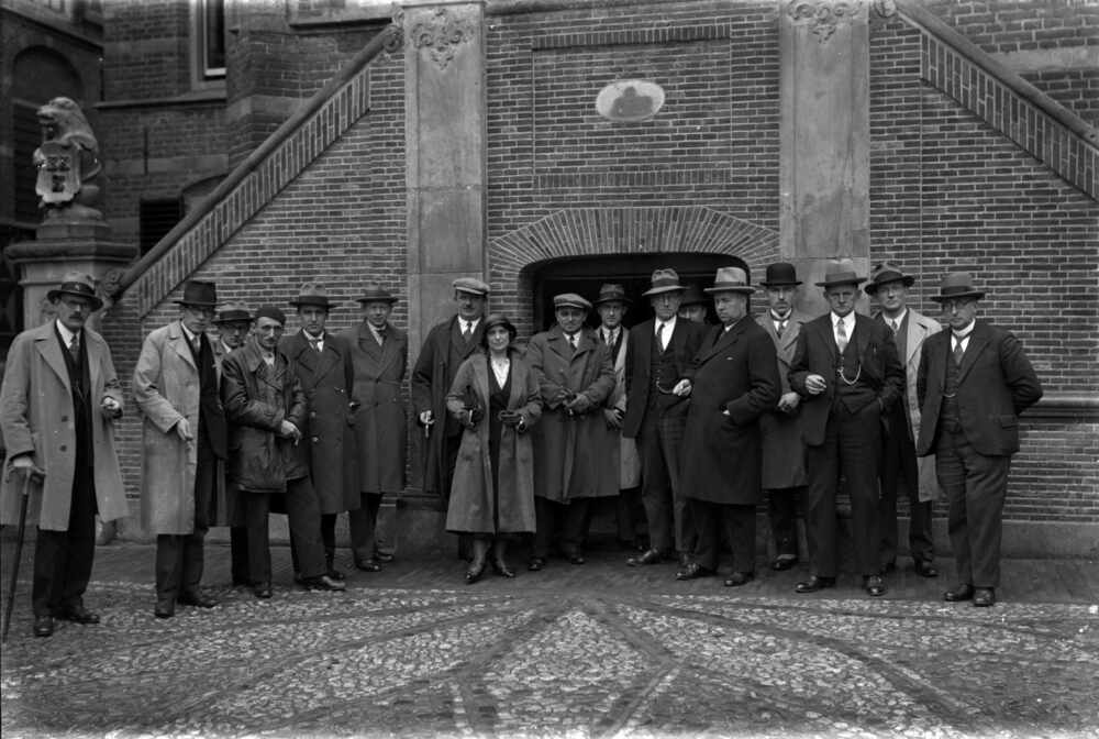 Foto, voorstellende een groep van zestien heren en é...