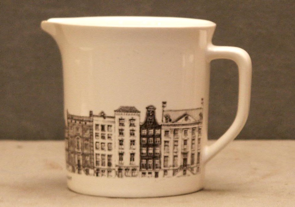 melkkannetje van aardewerk met een bedrukte decorati...