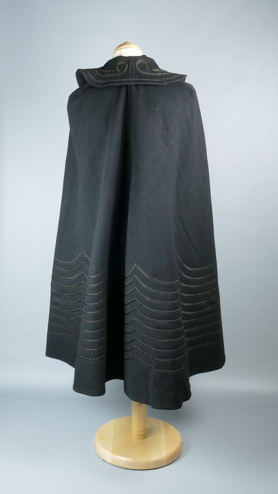 Wollen damescape met opgenaaid satijnband.