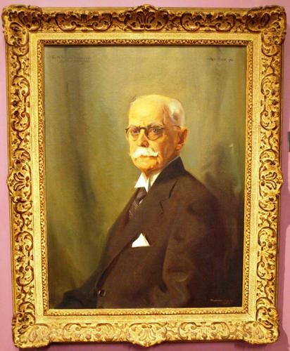 Borstbeeld van brons op een houten sokkel voorstelle...