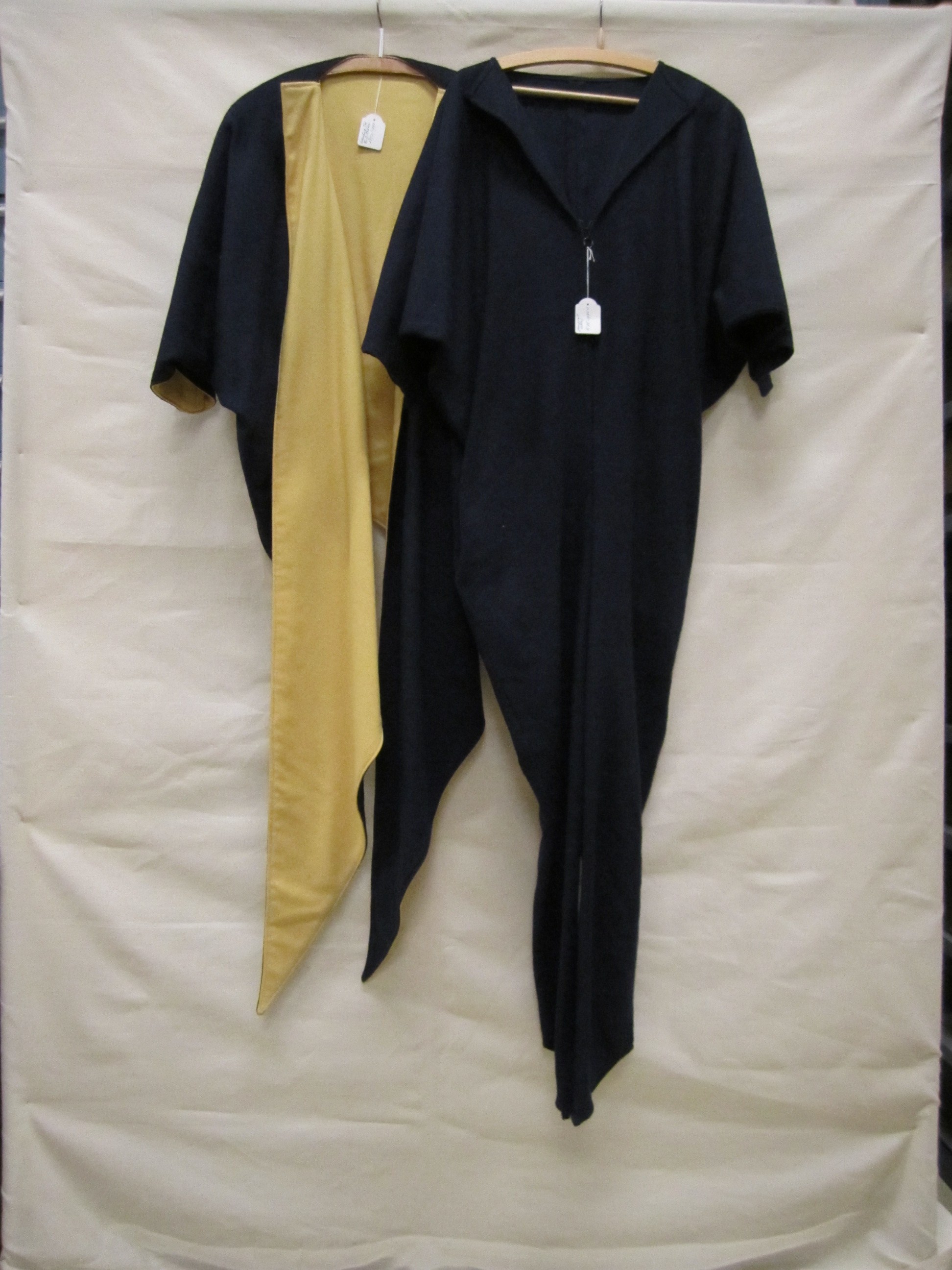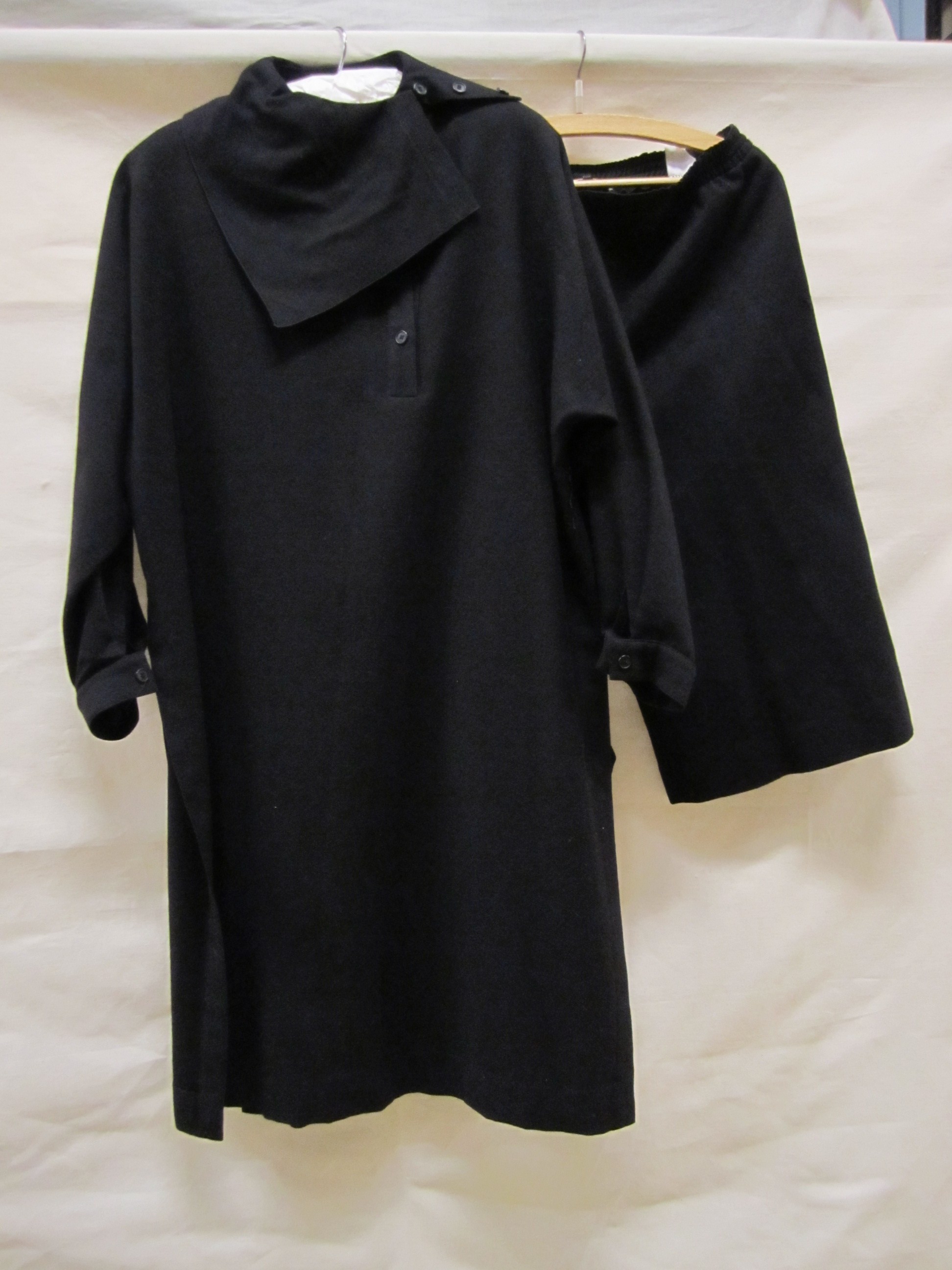 Ensemble van zwarte wol, bestaande uit een broekrok ...