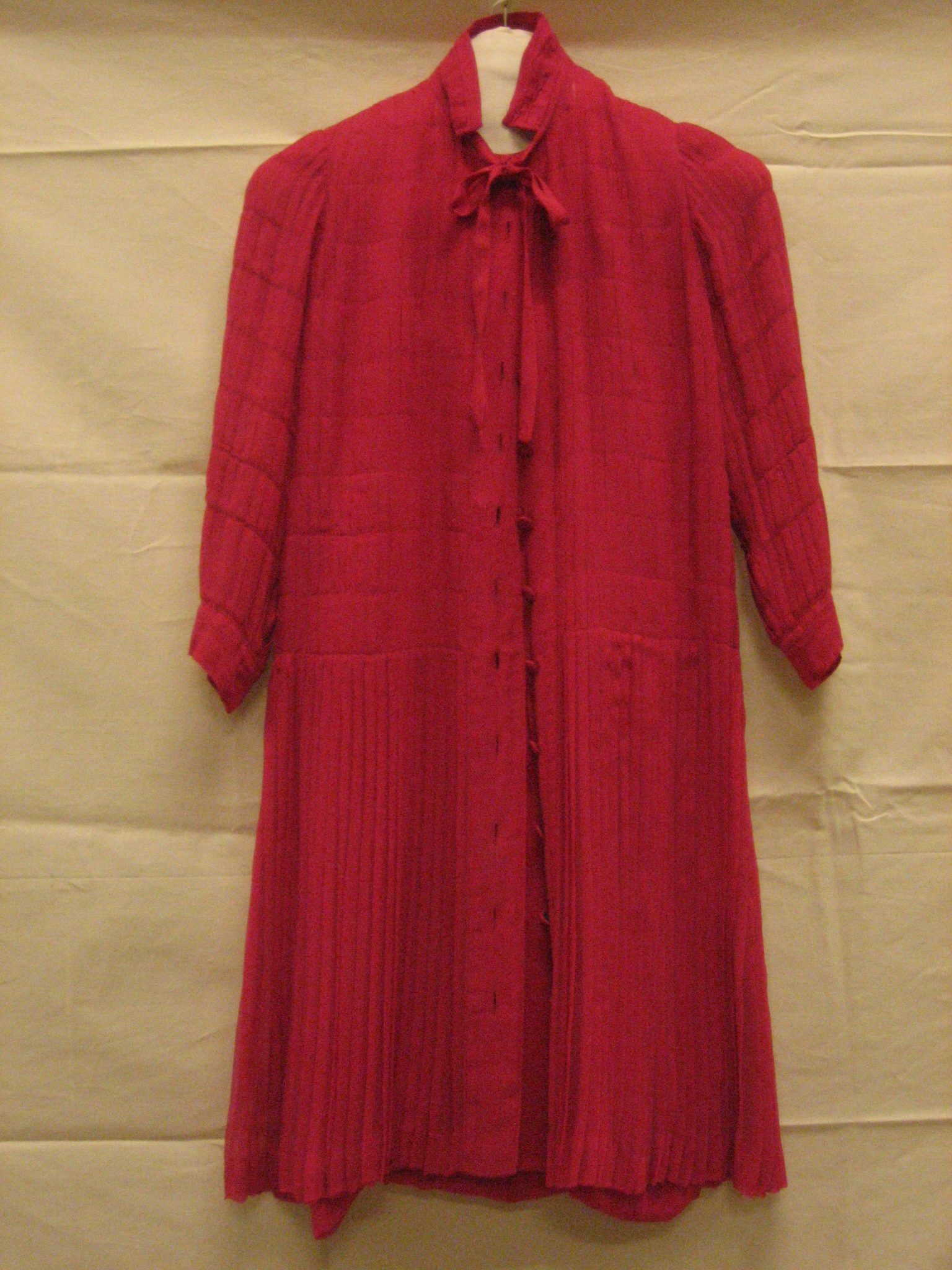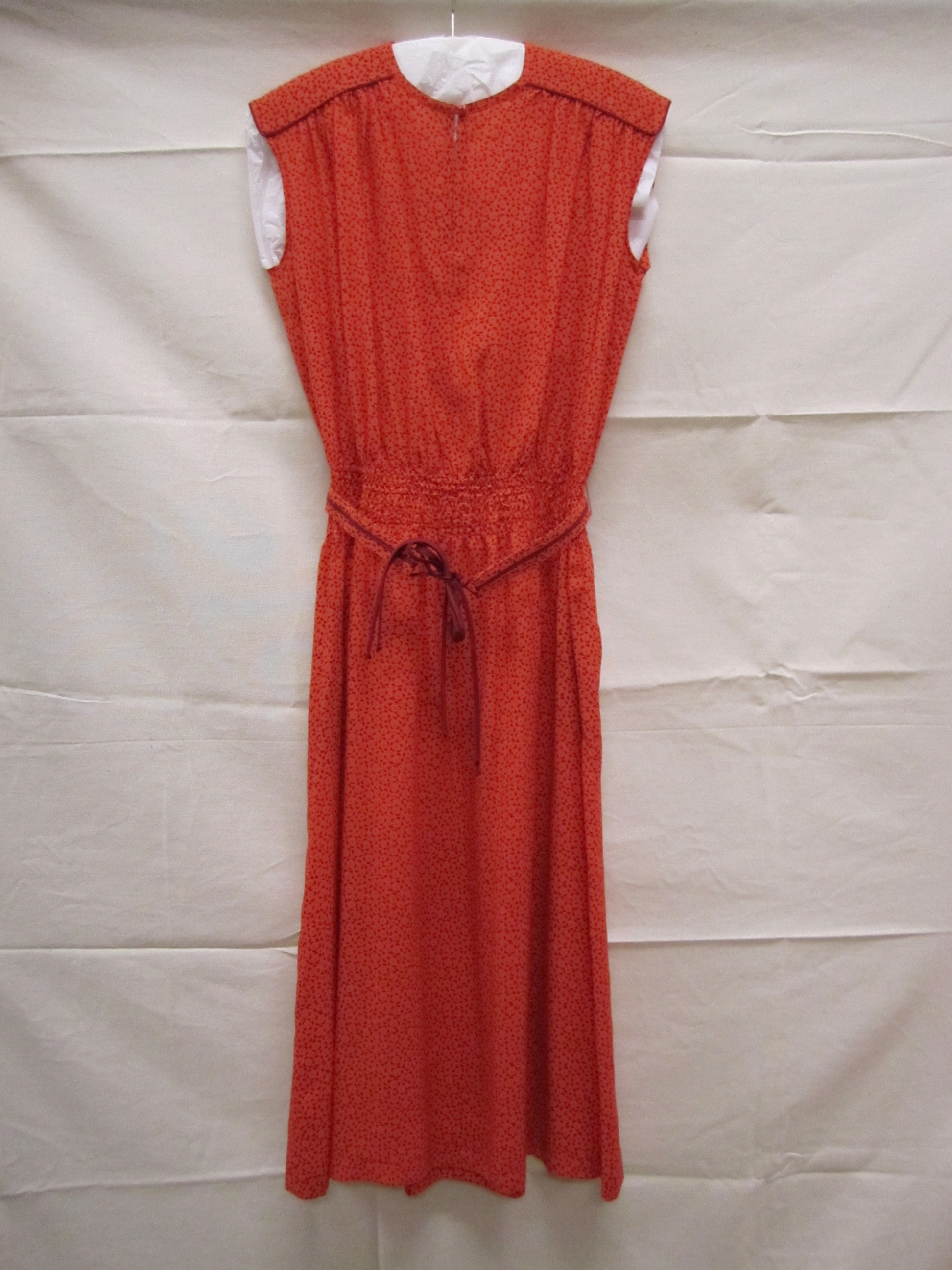 Ensemble bestaande uit jurk van rode zijde bedrukt m...