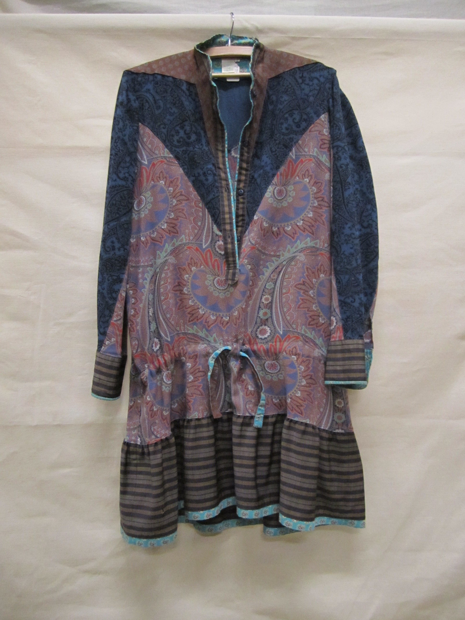 Overslagjurk van blauw/groen katoen fluweel, wijd va...