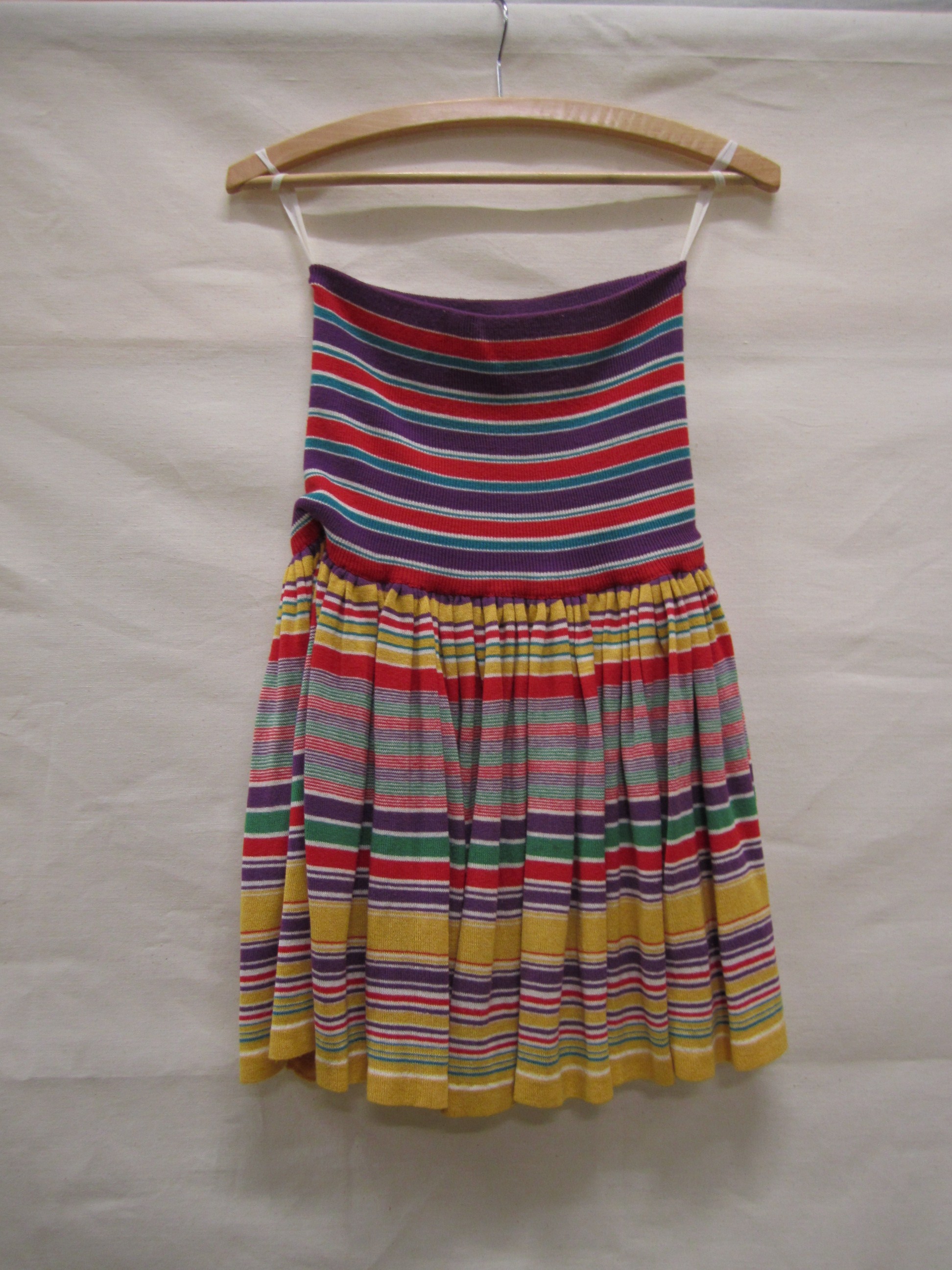 Rok van horizontaal gestreept tricot in paars, rood,...